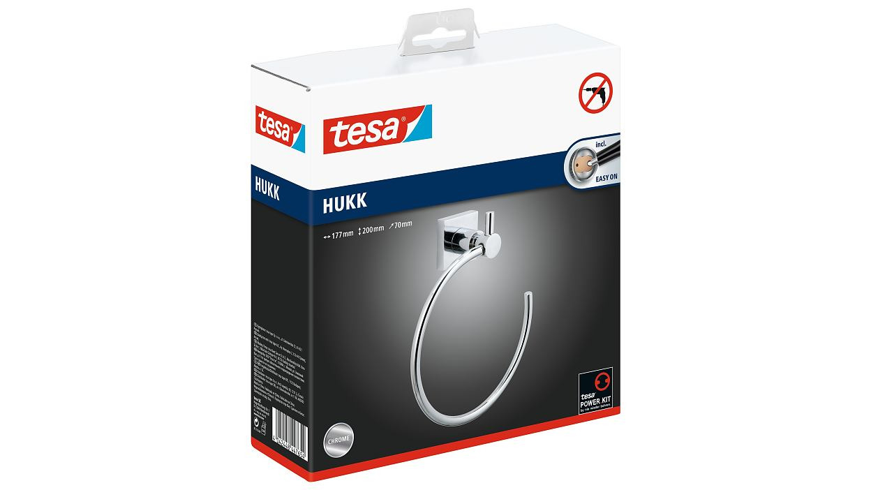 Caractéristiques de l'anneau porte-serviette, métal chromé, pose facile sans perçage, Tesa Hukk (40254-00000-00) :