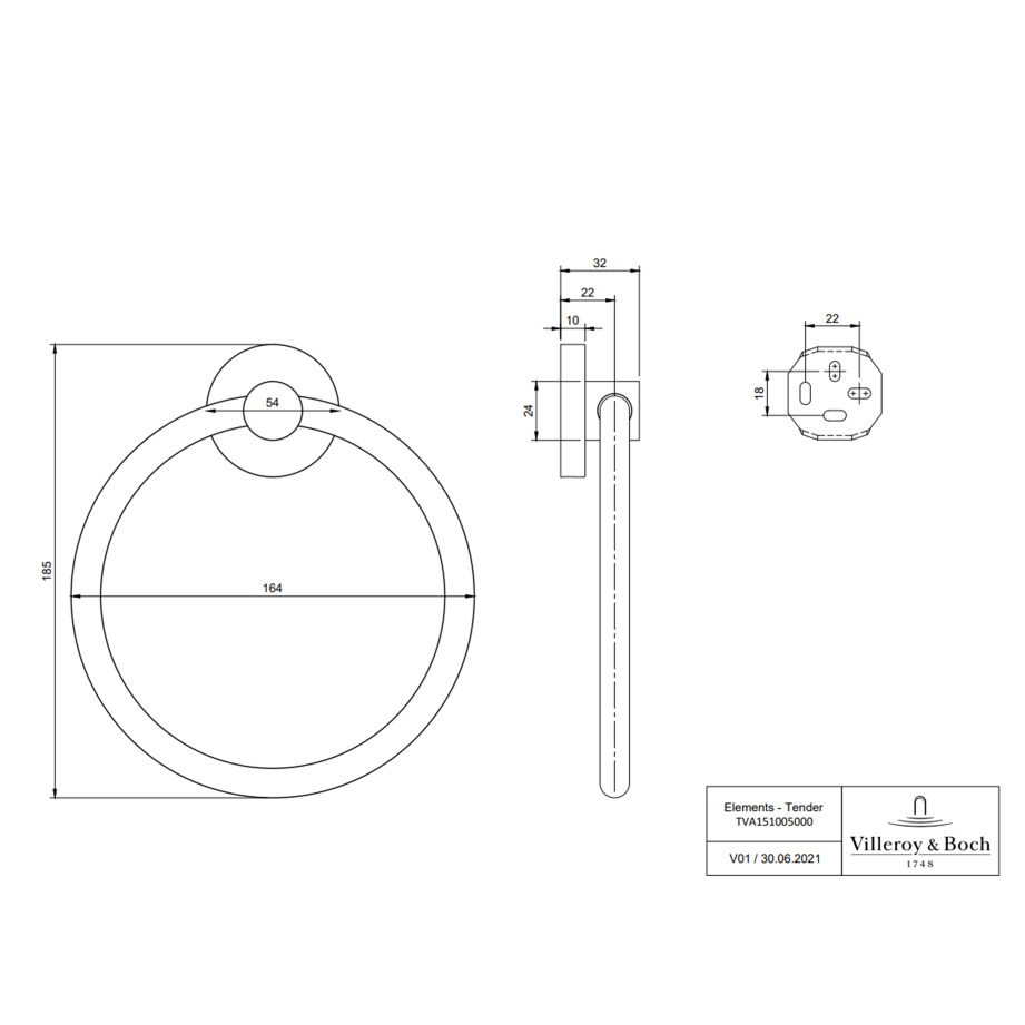 Villeroy & Boch Elements - Tender Porte Serviettes, 164x32x185mm, Chrome (TVA15100500061)