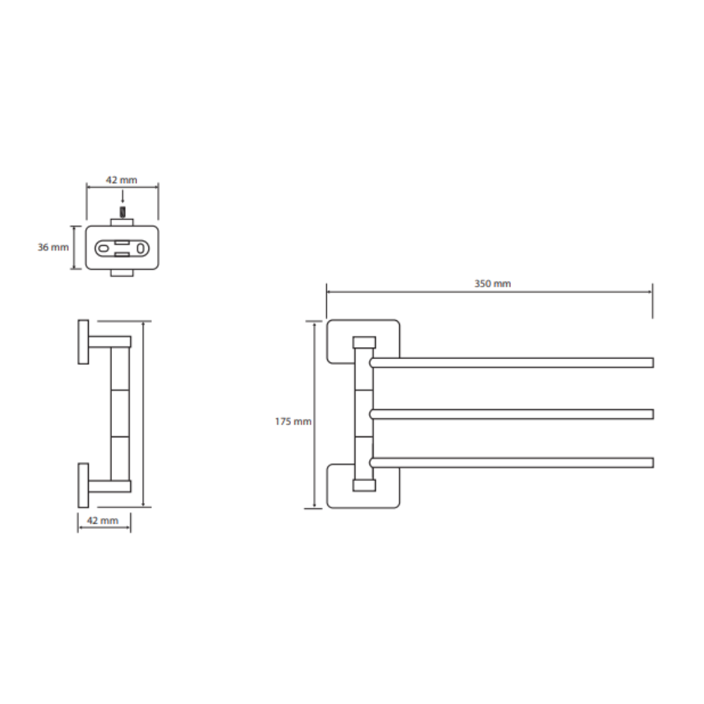 Porte-serviettes 3 bras modulable en finition chromée. Montage par perçage. Espacement de montage 12,5 cm.