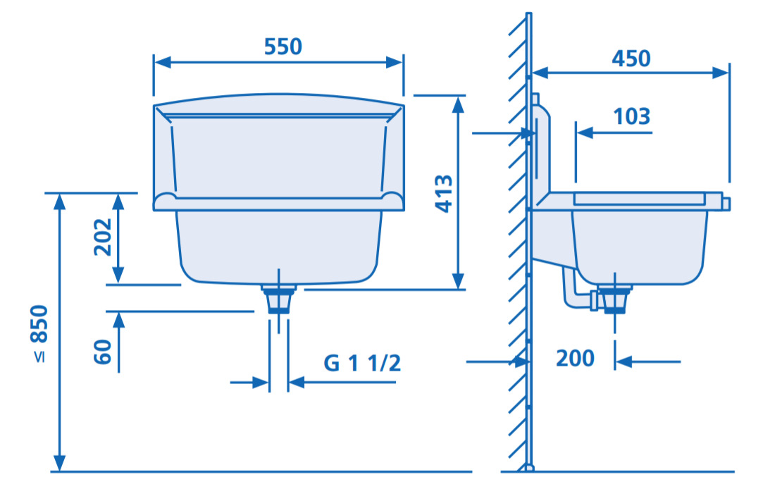 - Dimensions de l'évier : 550 x 450 x 413mm