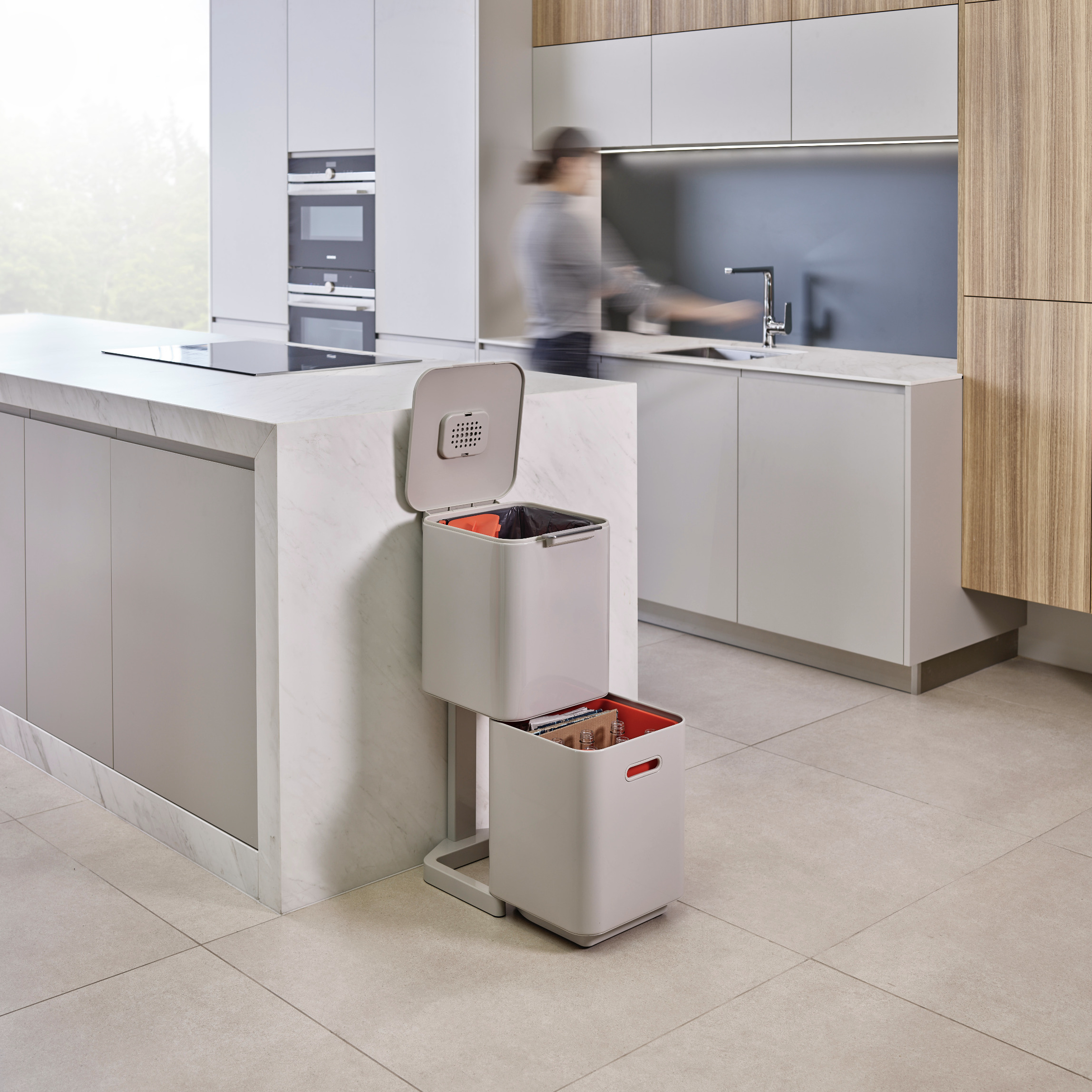 Joseph Joseph Totem Compacte poubelle avec séparation des déchets et recyclage, 40 litres, filtre à charbon actif, beige (30064)