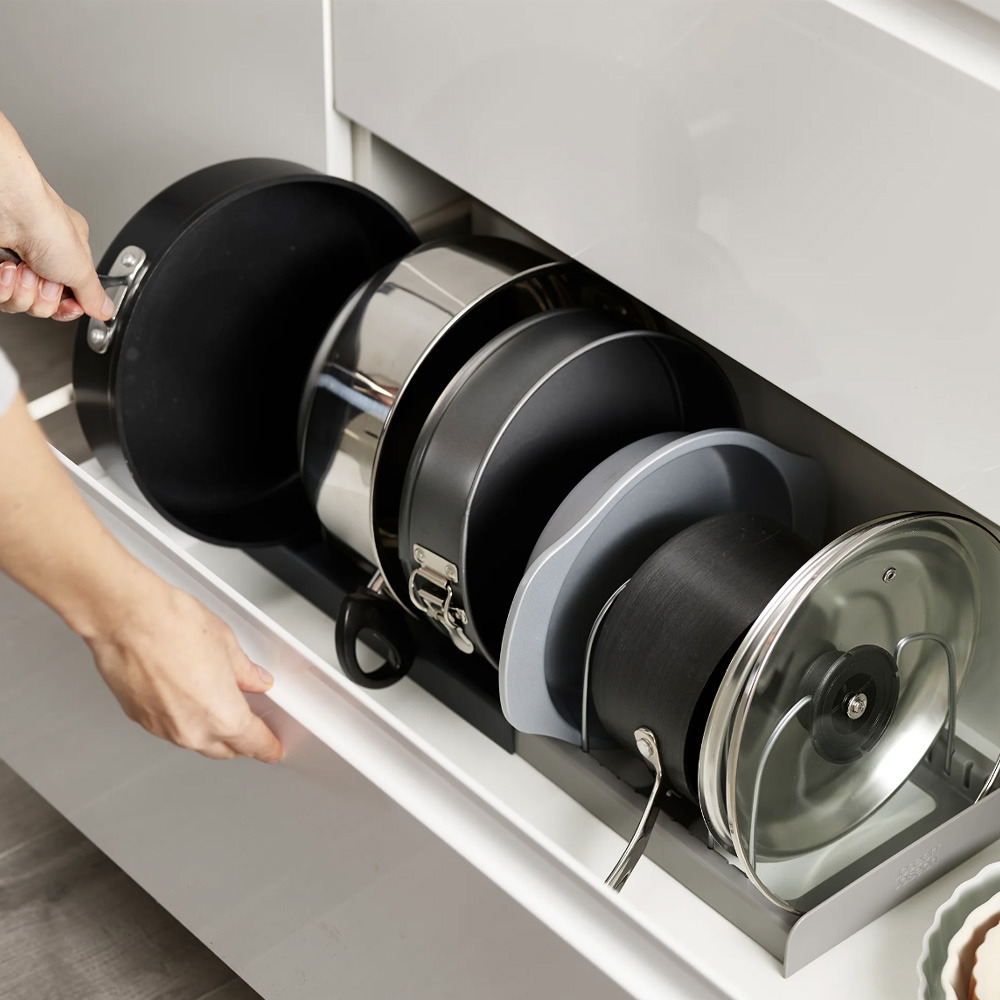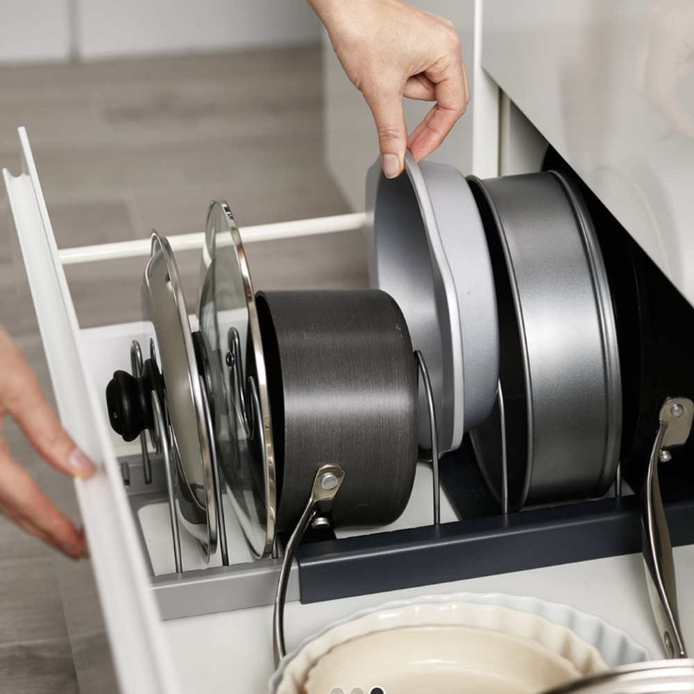 - Parfait pour ranger différents types de casseroles, couvercles et moules à pâtisserie