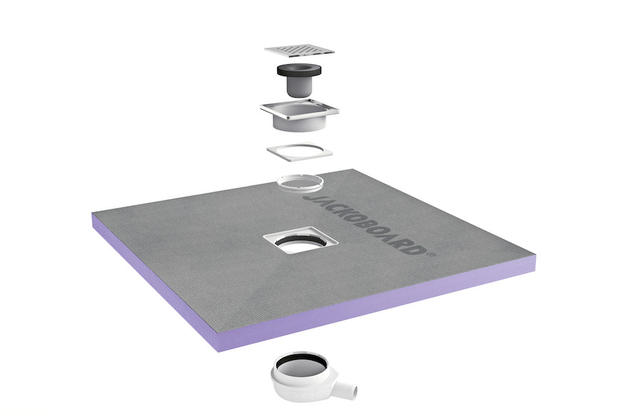Les receveurs de douche JACKOBOARD® Aqua permettent l’aménagement personnalisé de belles salles de bains. Ils sont disponibles dans tous les formats standards et un grand nombre de dimensions et de formes sur mesure. Ils disposent d’un noyau en mousse rigide de polystyrène extrudé (XPS) hydrofuge, d’une pente préformée et d’un revêtement spécial sur les deux faces qui permet de les carreler directement, sans aucune préparation supplémentaire.