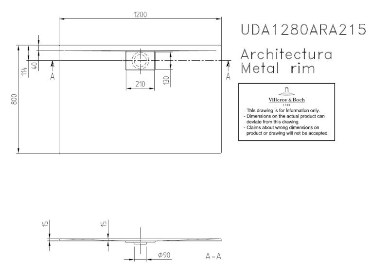 Villeroy & Boch Receveur Architectura Metalrim, 1200 x 800 x 15 mm, gris (UDA1280ARA215V-3S)