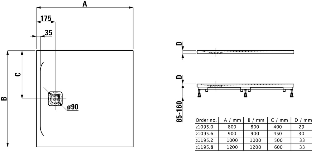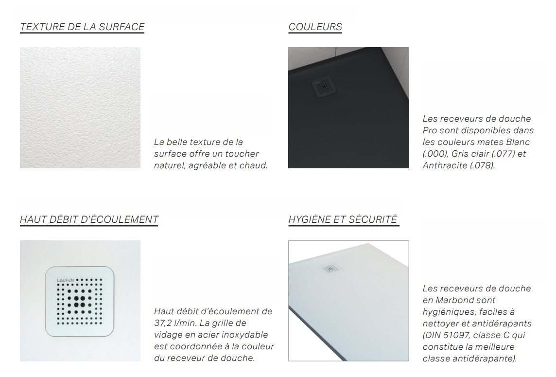 Laufen Pro Receveur de douche en gel coat Marbond extra-plat carré, évacuation sur le côté 100x100, Gris mat H2119520780001