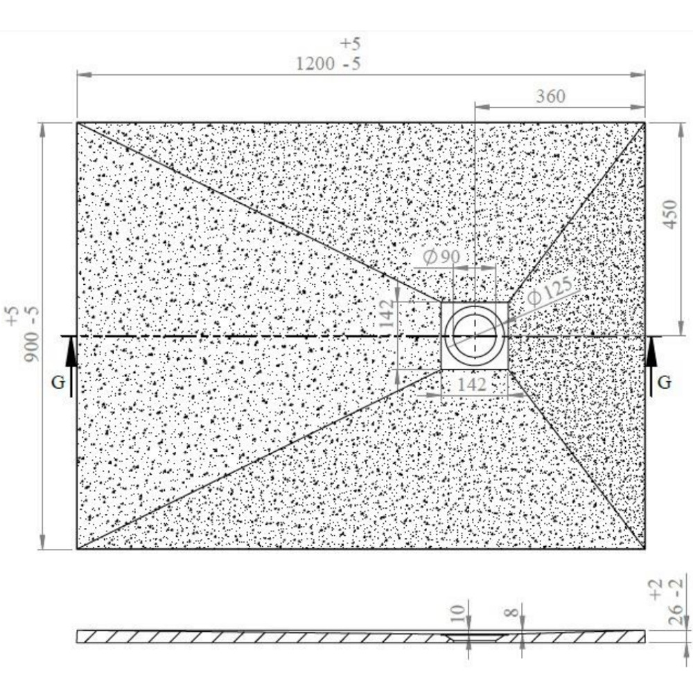 Caractéristiques du receveur de douche rectangulaire 120x90cm avec siphon, en marbre coulé, Gris, Swiss Aqua Technologies Alek (SATALEK12090S-S) :