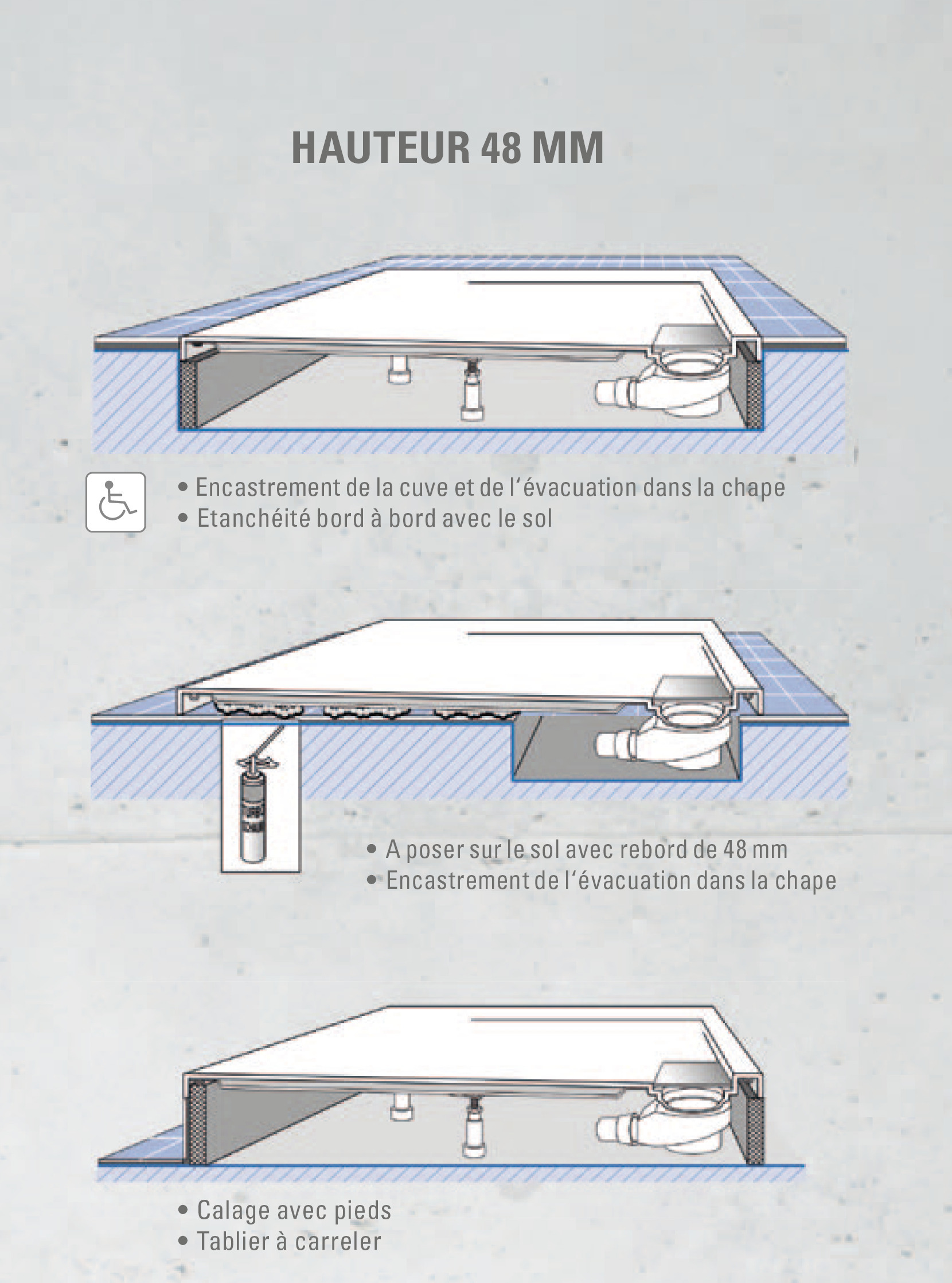 - PMR : receveur adapté aux personnes handicapées grâce à un design sans seuil