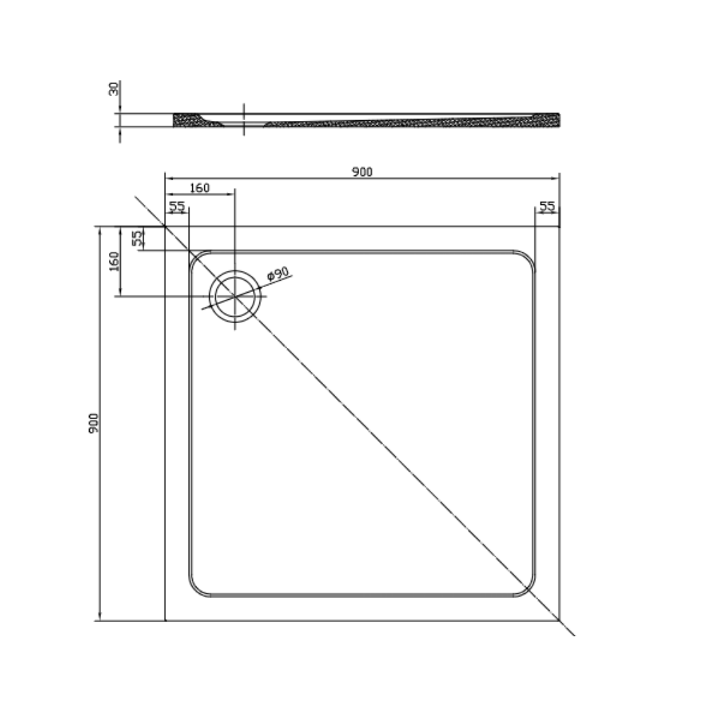 Caractéristiques du Receveur de douche carré 90x90 cm marbre coulé, blanc Swiss Aqua Technologies Project by Siko (SATSVPRO90Q) :