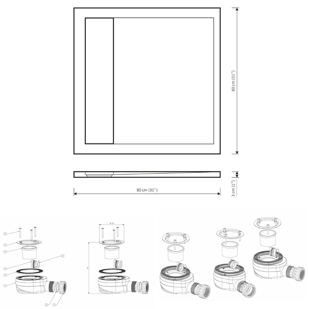 Ceramia Alda Receveur de douche 80x80cm + Siphon Eslim90. Pierre de synthèse, blanc mat (ALD15-8080B-S)