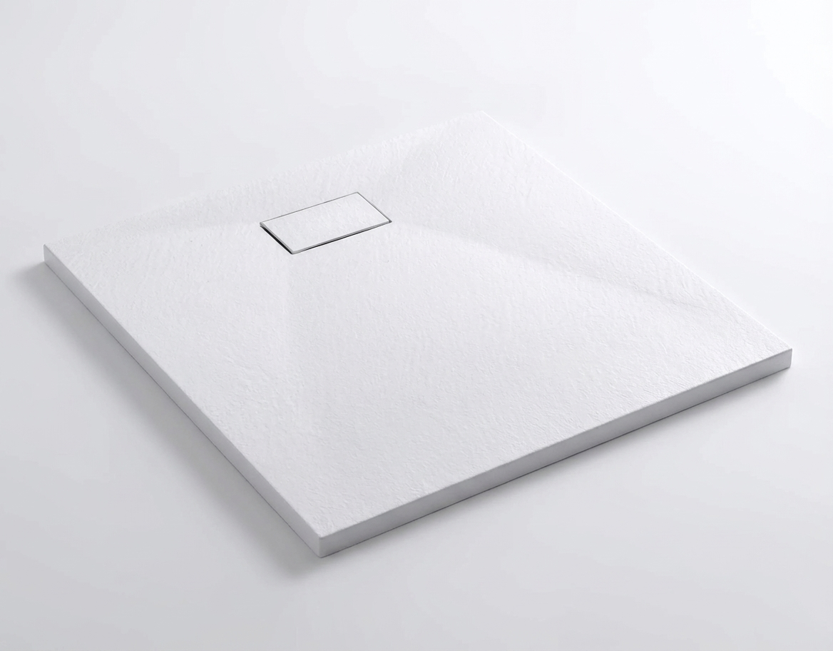 Ceramia Essential 90x90 cm receveur de douche carré à poser SMC avec surface effet pierre, blanc (CERAES9090W)