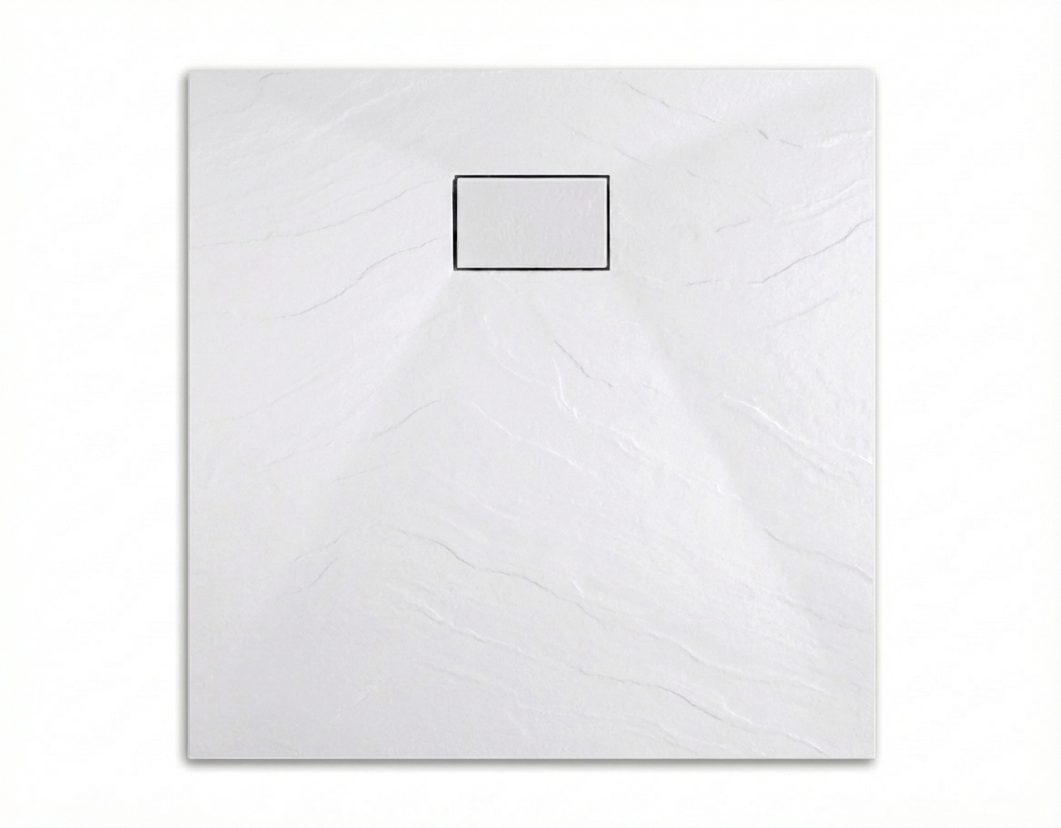 Ceramia PixL 90x90 cm receveur de douche carré à poser en résine composite avec surface effet pierre, blanc (CERAPX9090W)