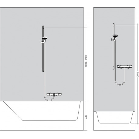 - Diamètre de la barre de douche: 22 mm