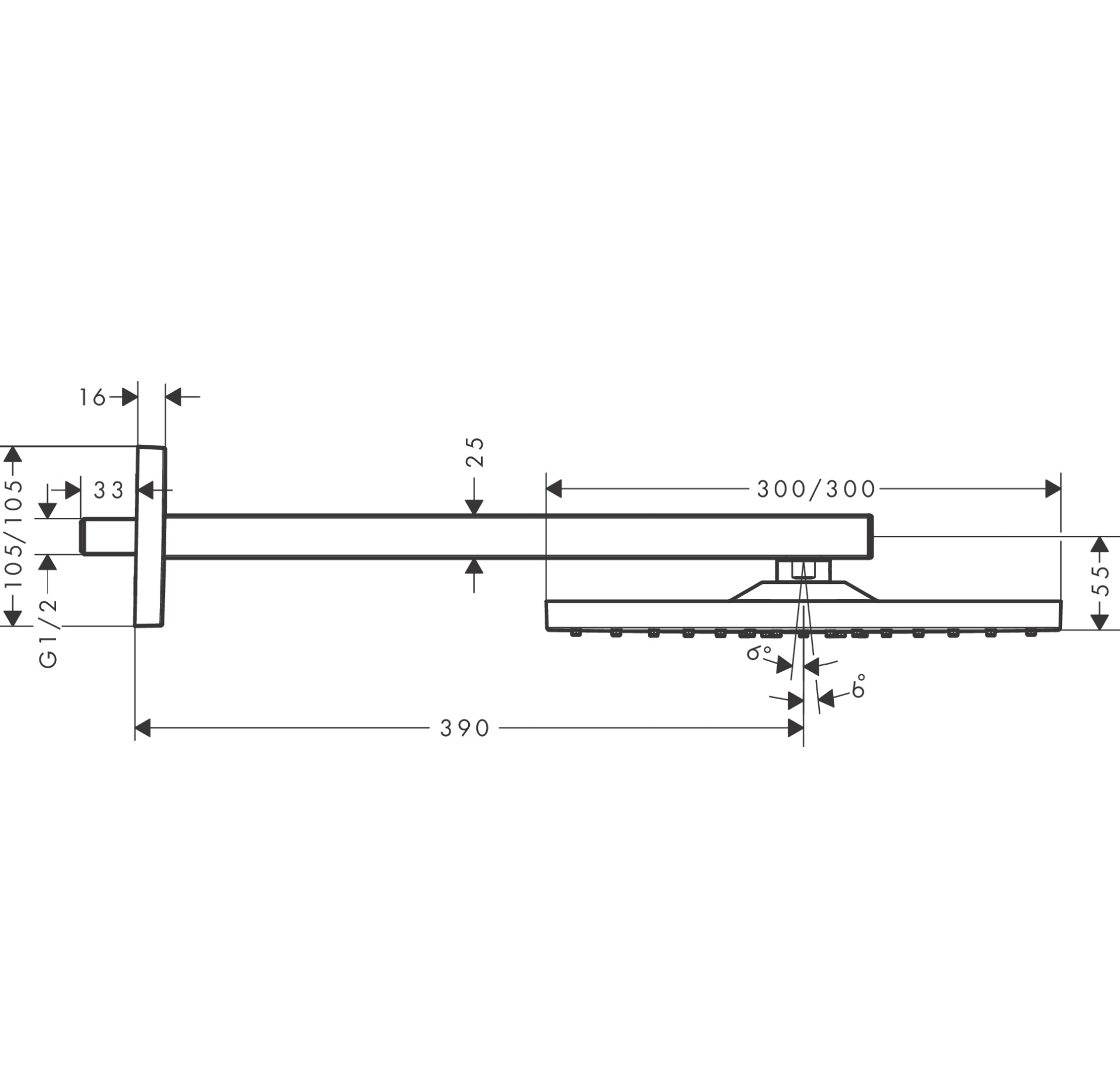 Hansgrohe Douche de tête Raindance E300, 1 jet avec bras de douche, chromé (26238000)