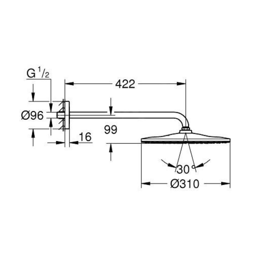 Grohe Rainshower mono 310 ensemble douche de tête et bras 42,2 cm, 1 jet (G26558000)