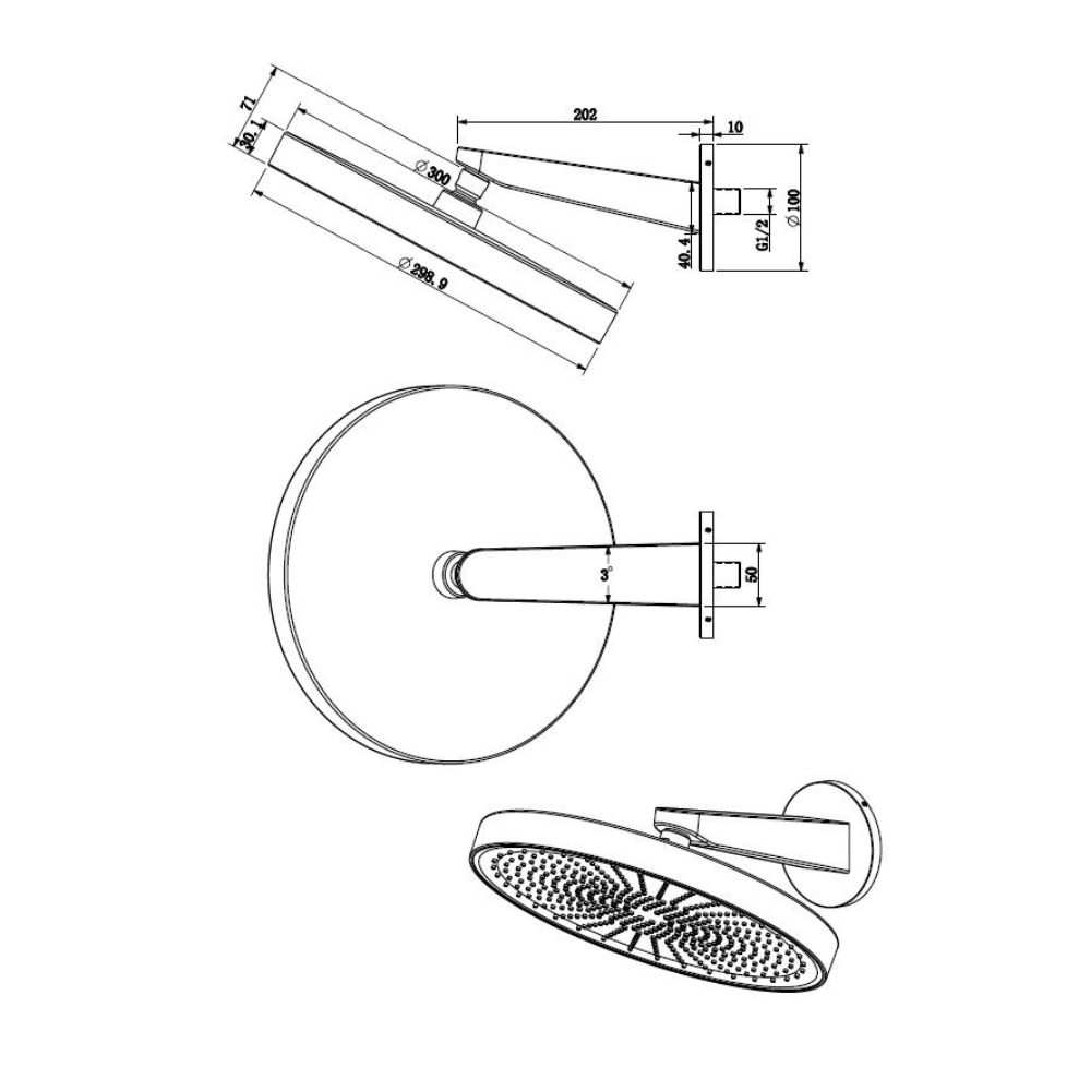 Caractéristiques de la douche de tête mural 1 jet avec bras de douche, diamètre 30 cm, Swiss Aqua Technologies, noir mat (SATBSHS81SET) :