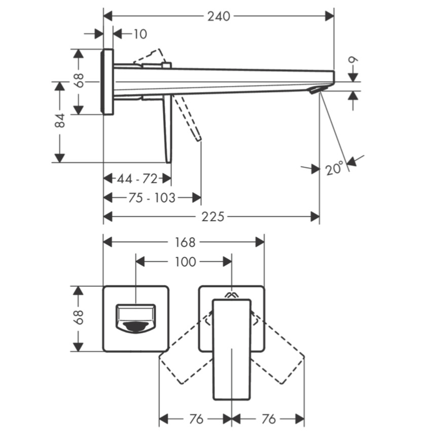 - Hansgrohe Metropol Mitigeur de lavabo encastré mural, bec 225mm, poignée manette, bonde à écoulement libre (32526140)