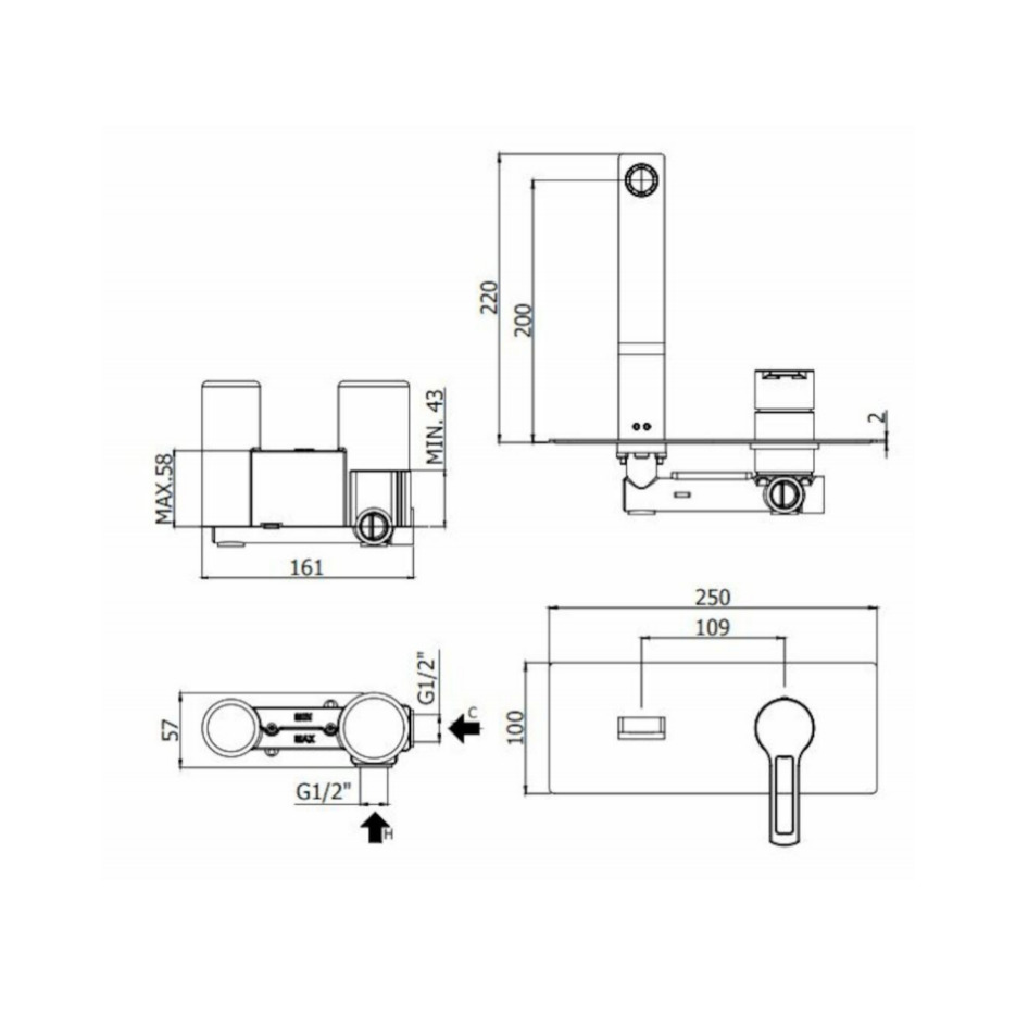 Paffoni Ringo West Mitigeur de lavabo encastré avec corps d’encastrement et mousseur M24x1, Chrome (RIN105)