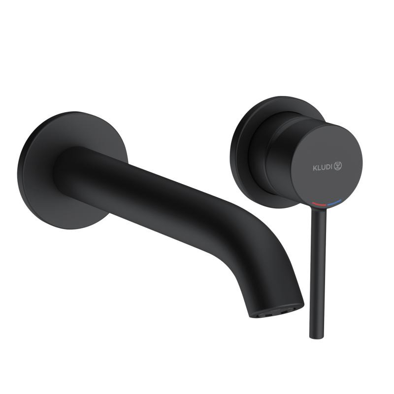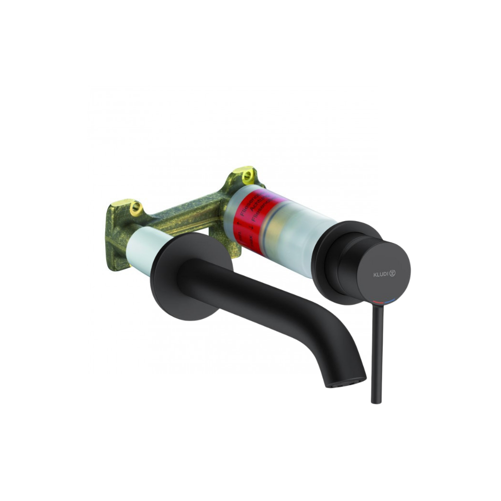 Caractéristiques du Mitigeur lavabo mural 2 trous à encastrer Kludi Bozz Kit + Corps à encastrer pour mitigeur de lavabo 2 trous, noir mat Kludi (382453976-C) :