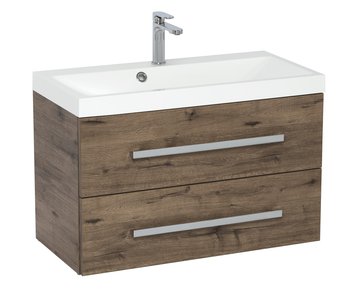 - Meuble de salle de bain suspendu avec vasque en marbre moulé 80x40 cm chêne Wellington, emballé séparément.