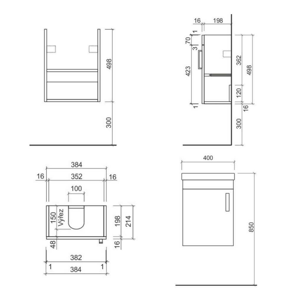 Naturel Vario Dekor Set Meuble suspendu 40x50cm, Chêne + Vasque en céramique (VARIO240BIDB)