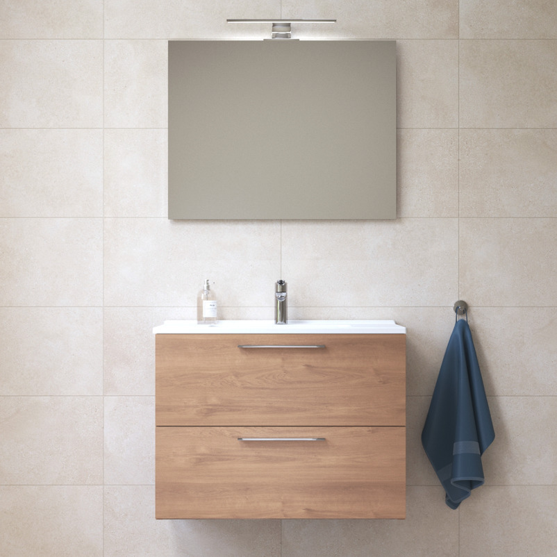 Caractéristiques du Meuble 79x61x39,5 cm pour salle de bain avec miroir, lavabo et éclairage LED, Chêne (MIASET80D-SP) :