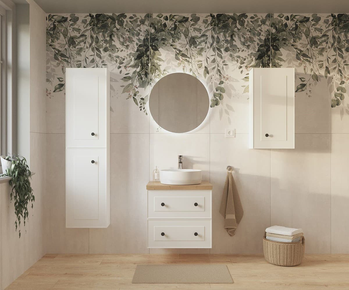 Le meuble de salle de bain Naturel Forli offre un design moderne et simple. Les armoires sont fabriquées dans un matériau blanc de haute qualité, ce qui donnera à votre salle de bain un look élégant.