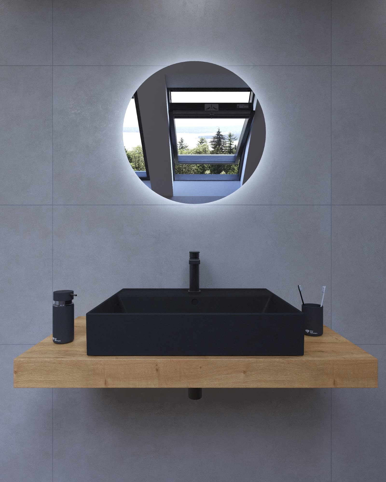 "L'ensemble de salle de bain SAT composé d'un lavabo, d'une plaque sous le lavabo et d'une robinetterie sur socle est une combinaison de minimalisme pur et de design moderne. Leurs formes simples et leur design parfait donnent à l’ensemble un look intemporel." L'ensemble est constitué des éléments suivants :Mitigeur lavabo SAT B-Way sans drain noir mat SATBSBW271