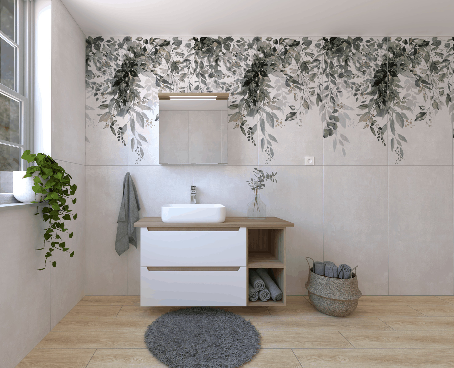 - Armoire à miroir Naturel Stilla + LED 60x60 cm blanc.