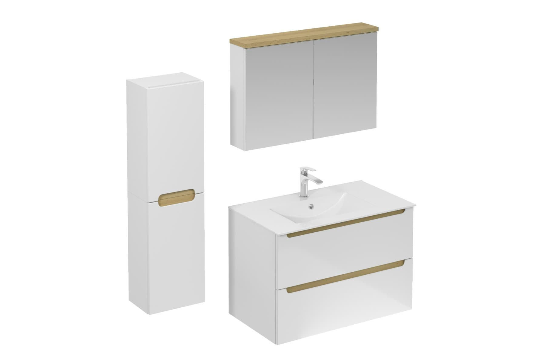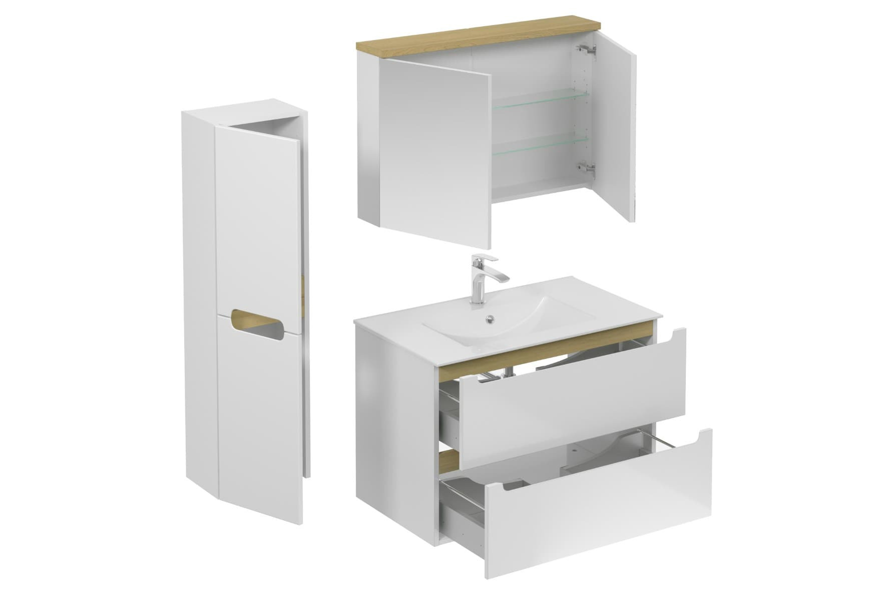 - Meuble de salle de bain Naturel Stilla 80x60x45 cm en décor blanc brillant. La façade et le corps sont recouverts d'un vernis photopolymérisable. Les tiroirs sont équipés du système Soft Close.