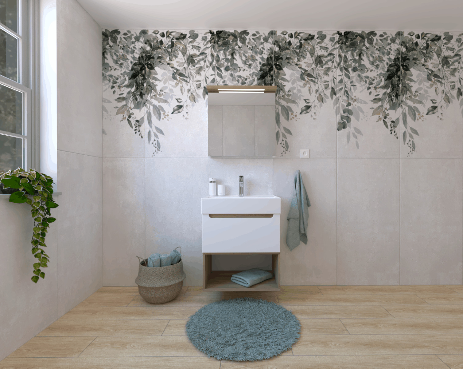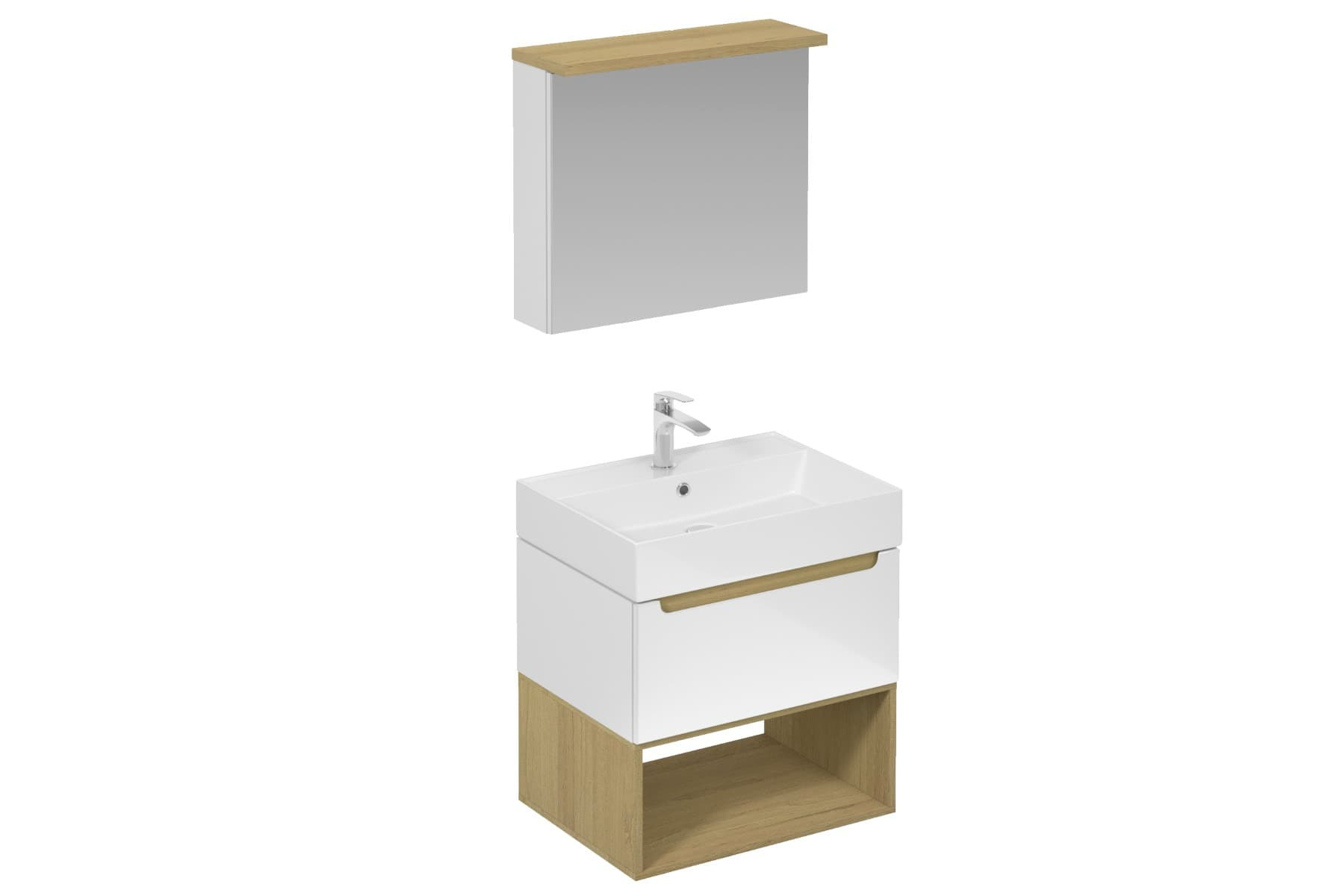 - Armoire à miroir Naturel Stilla + LED 60x60 cm blanc.