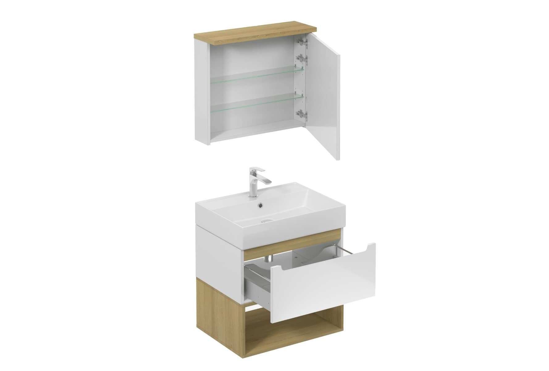 L'ensemble de salle de bain avec lavabo Naturel Stilla en blanc brillant rendra plus agréables les moments quotidiens passés dans la salle de bain et constitue une combinaison parfaite entre élégance, qualité et praticité. Des lignes fines avec des éléments en bois confèrent à cet ensemble un style intemporel. Chaque détail a été soigneusement conçu pour donner à votre salle de bain un aspect élégant et moderne, tout en offrant des espaces de rangement pratiques pour tous vos besoins.