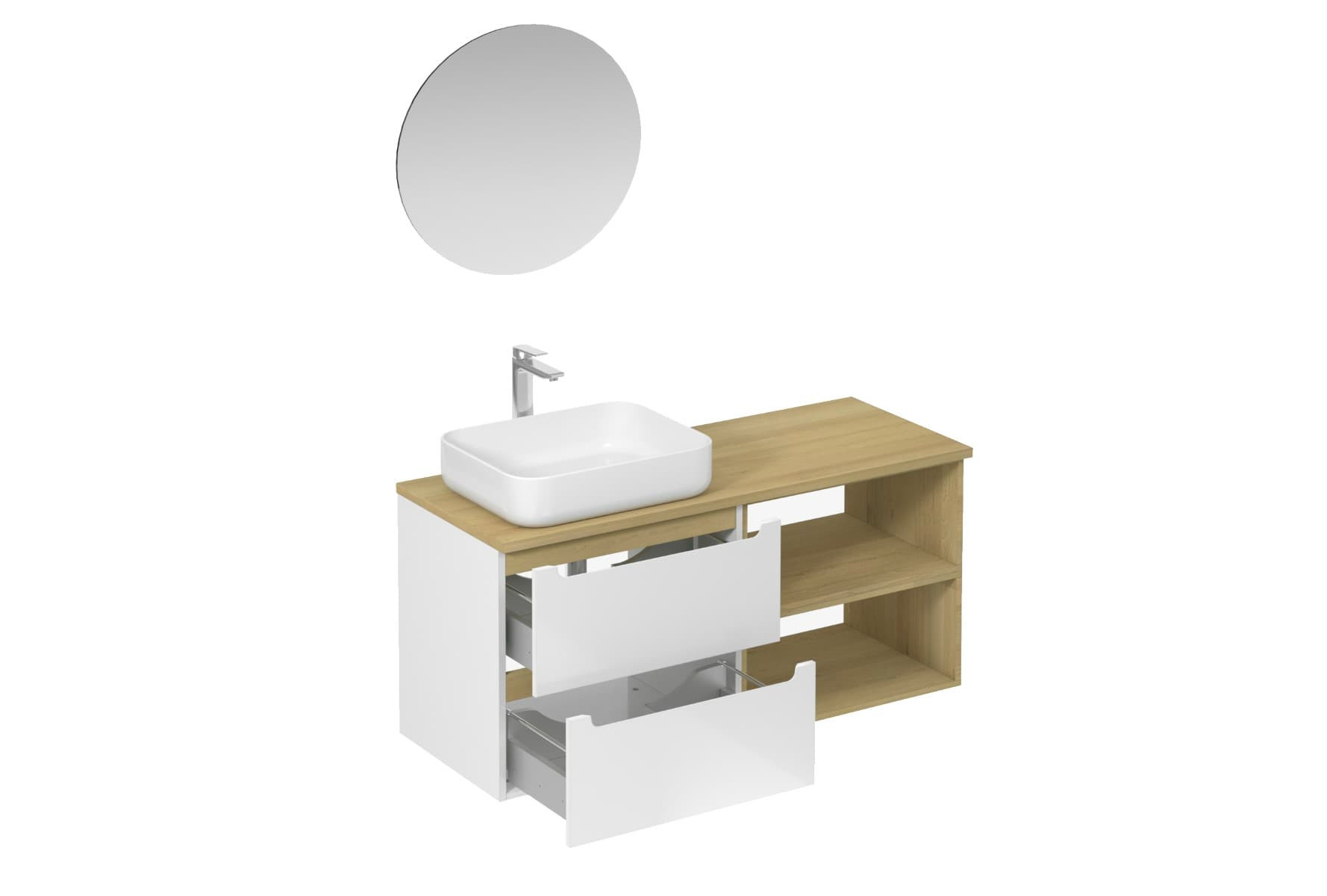 Cet aménagement au design épuré et moderne propose des équipements fonctionnels. Il idéal pour ranger simplement ses accessoires de salle de bain.