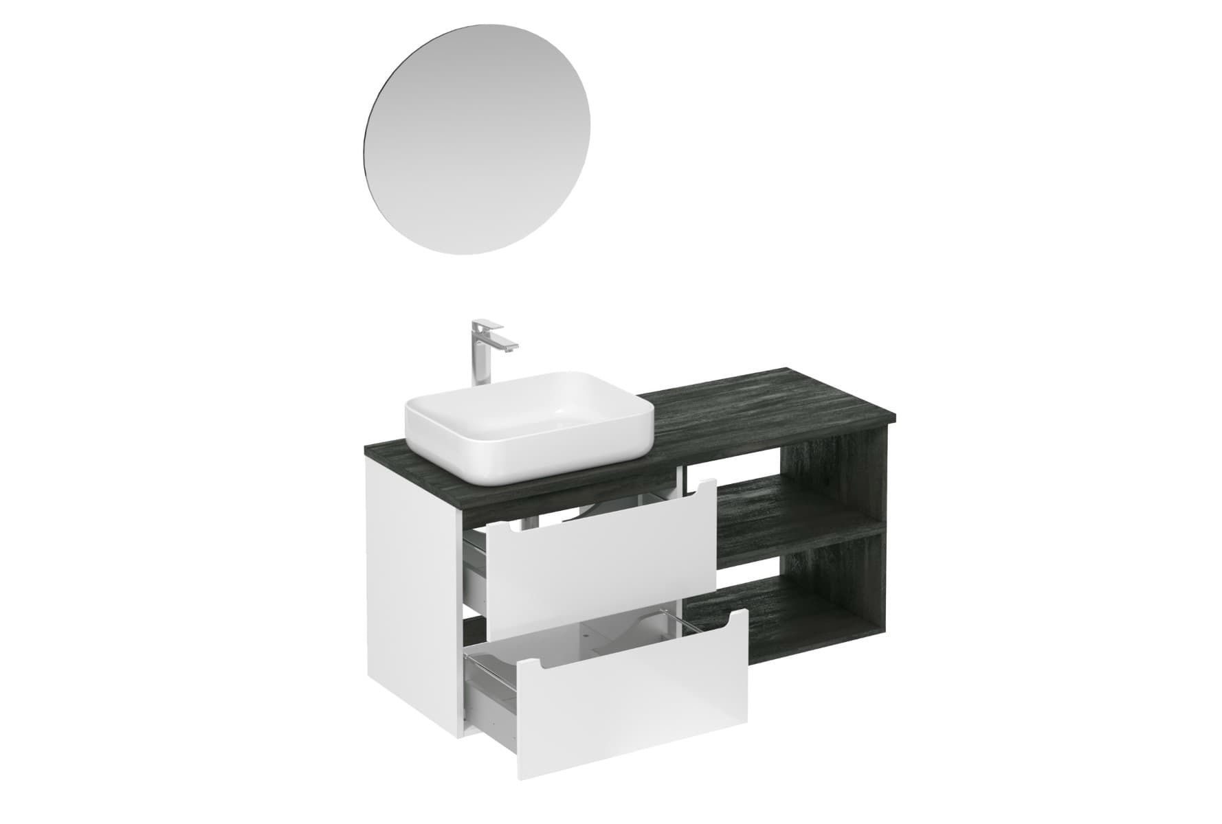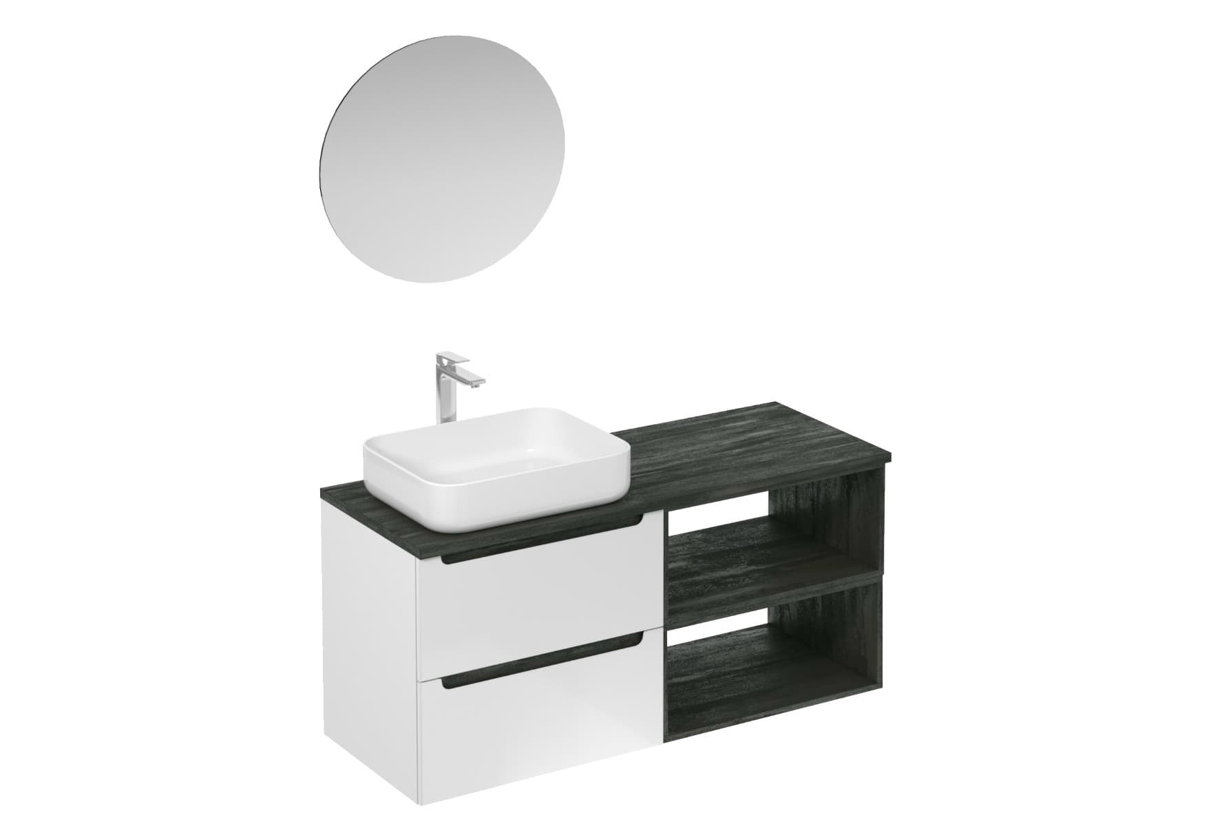 Ensemble de salle de bain mural avec lavabo en céramique blanc avec surface en mélaminé :