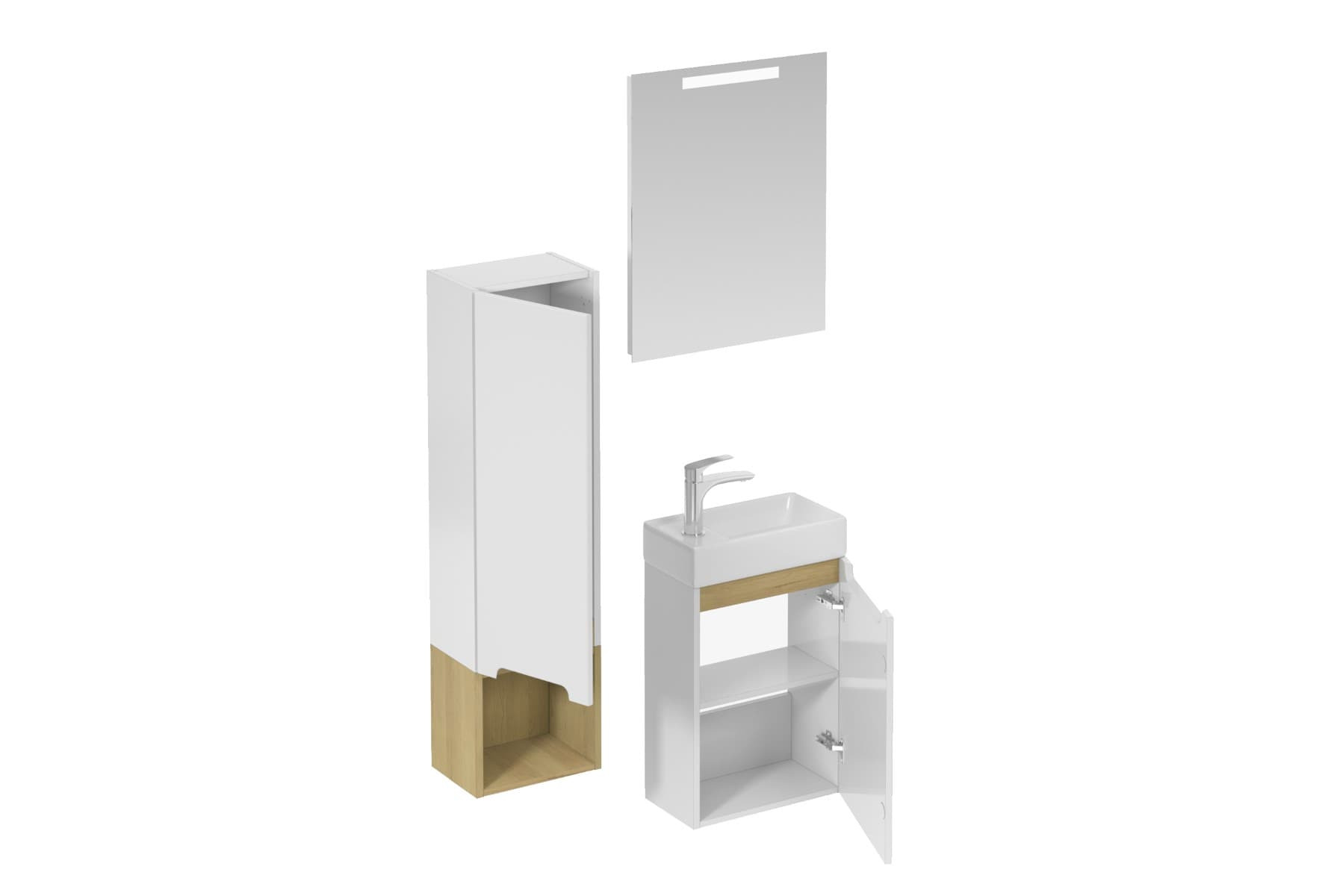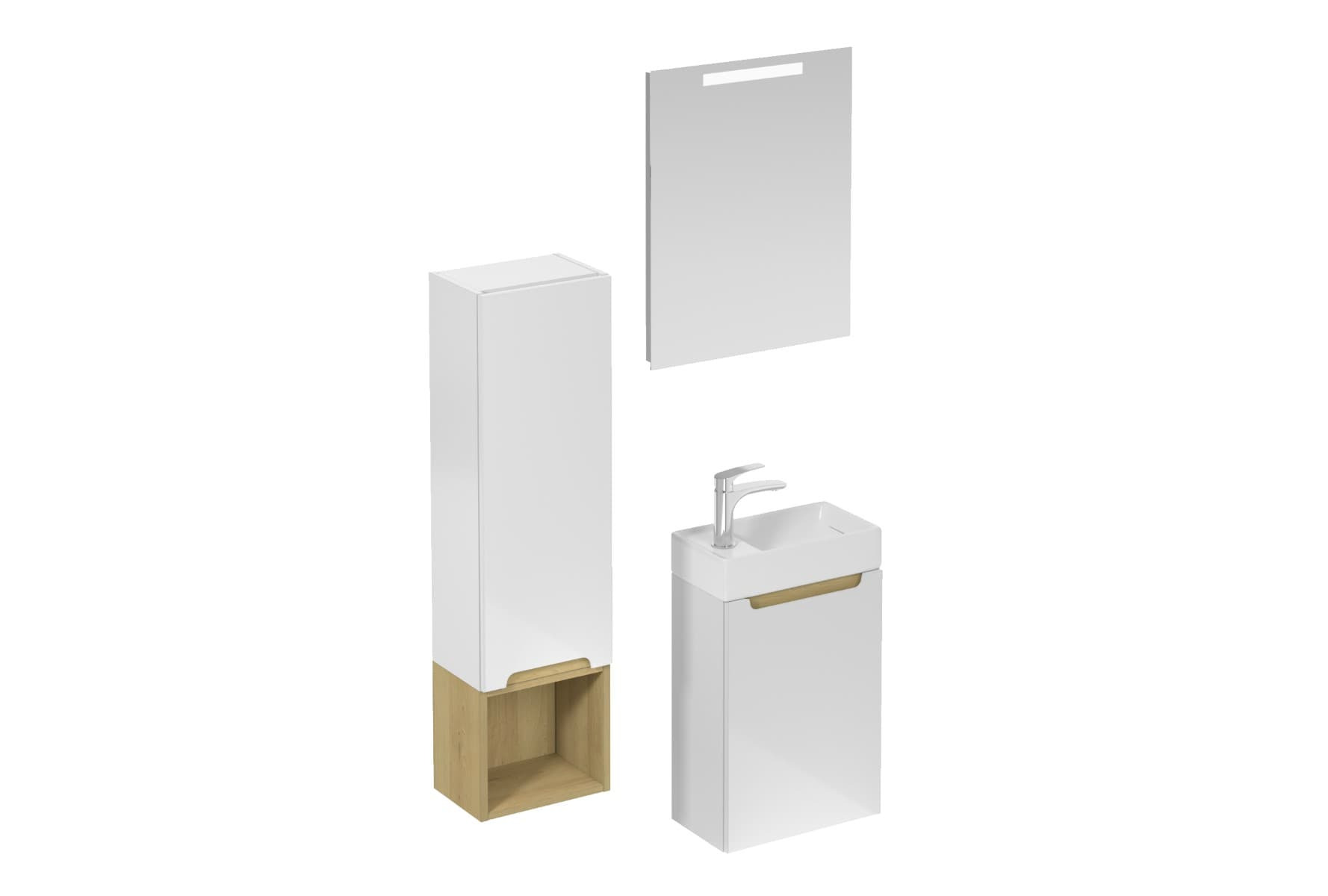 Ensemble de salle de bain mural avec lavabo en céramique blanc avec surface en mélaminé: