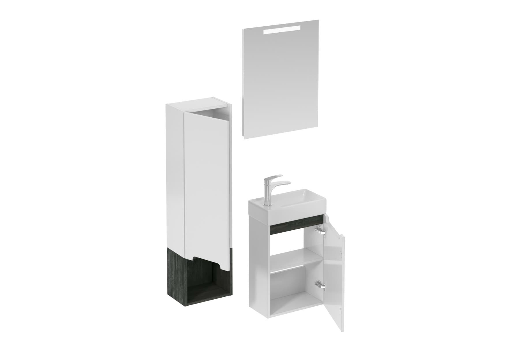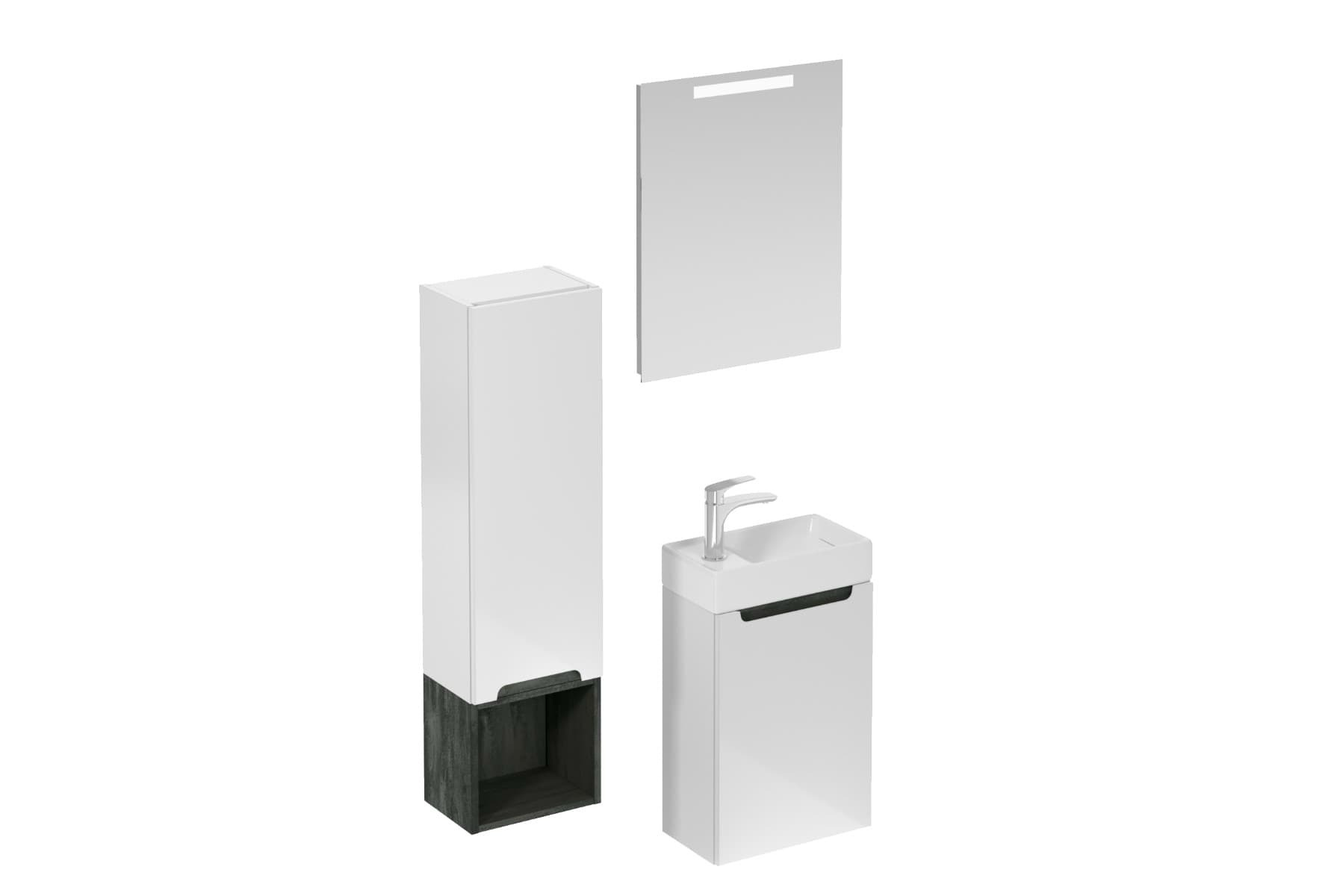 Ensemble de salle de bain mural avec lavabo en céramique blanc avec surface en mélaminé: