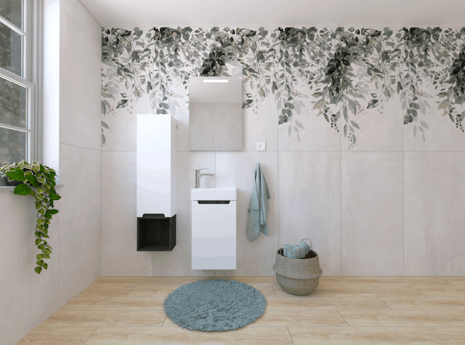 Chaque paquet du meuble Stilla contient 3 couleurs de stores, que vous placez dans le meuble à l'endroit de la poignée. Cette astuce vous permet de changer la couleur des poignées afin qu'elles correspondent parfaitement au reste de la salle de bain et à tout l'intérieur.
