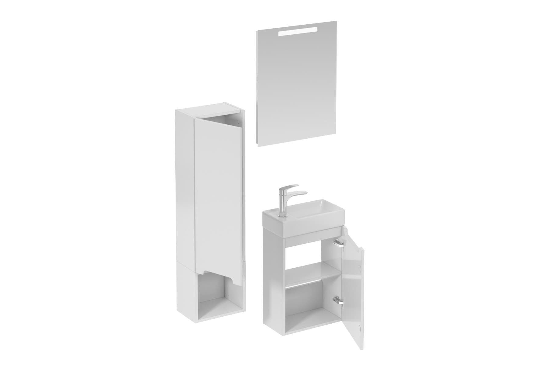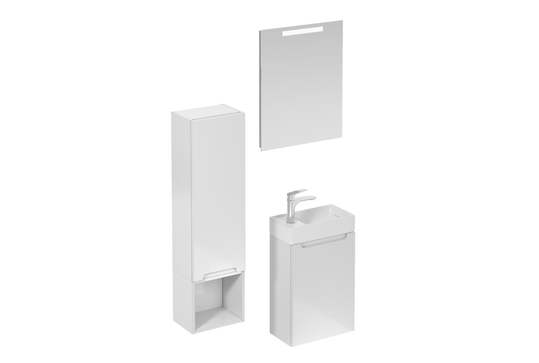 Ensemble de salle de bain mural avec lavabo en céramique blanc avec surface en mélaminé: