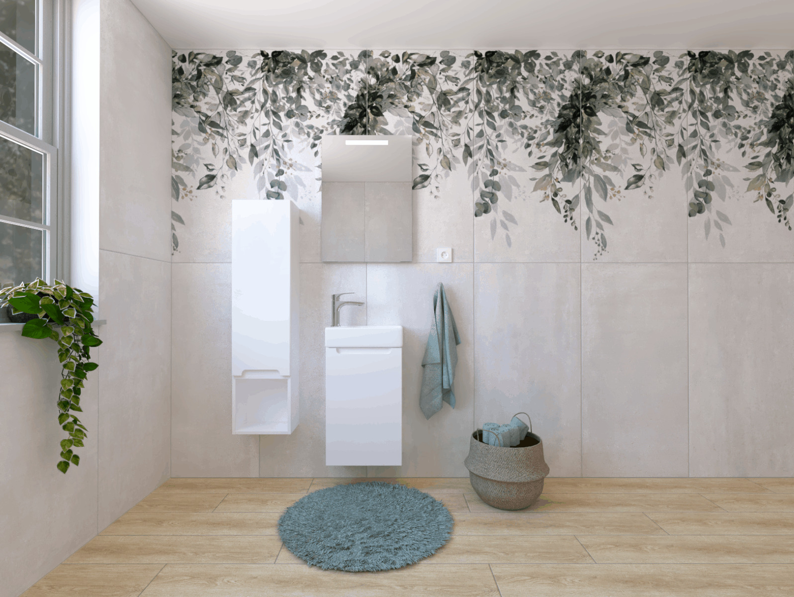 Chaque paquet du meuble Stilla contient 3 couleurs de stores, que vous placez dans le meuble à l'endroit de la poignée. Cette astuce vous permet de changer la couleur des poignées afin qu'elles correspondent parfaitement au reste de la salle de bain et à tout l'intérieur.