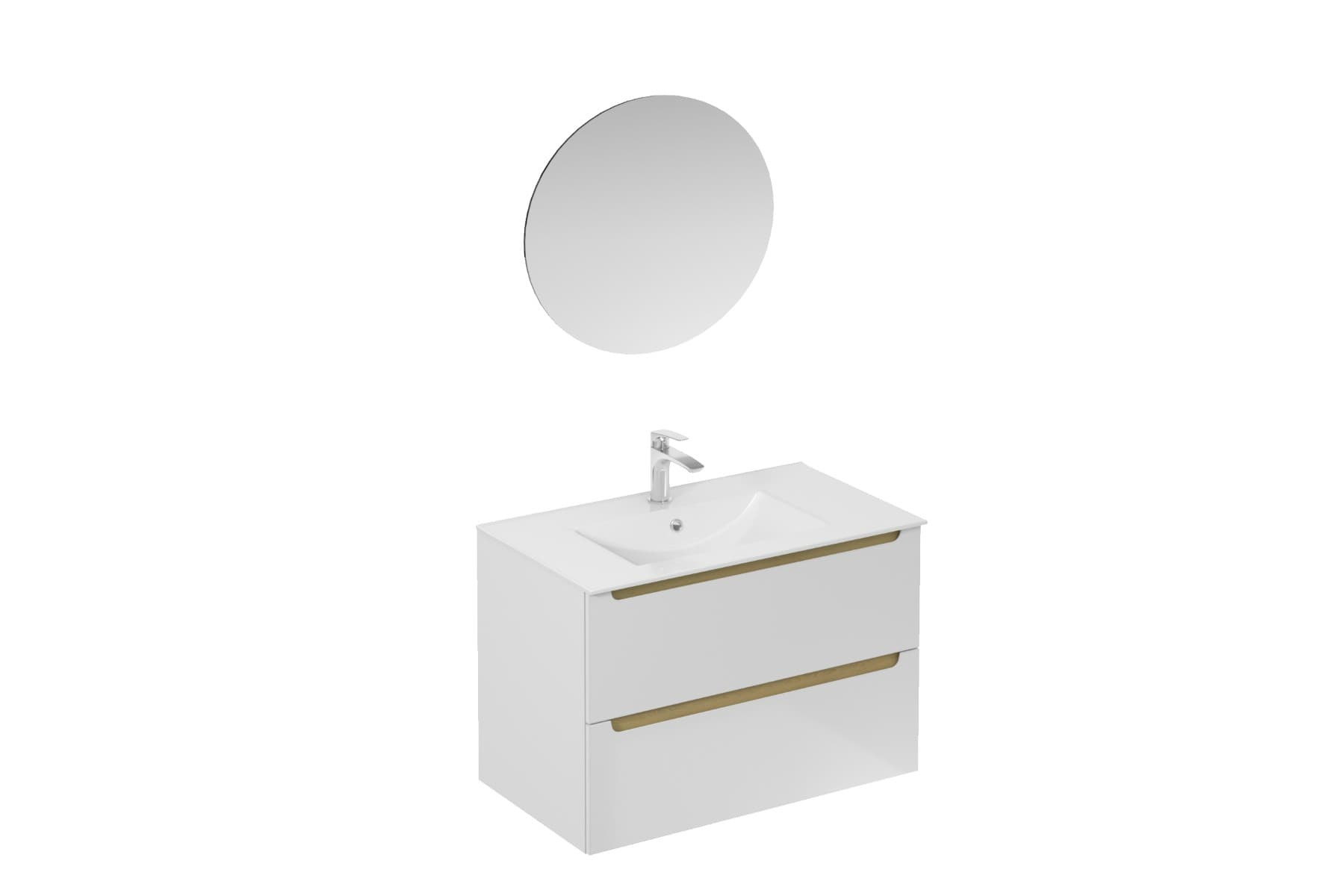 - Meuble de salle de bain avec lavabo Naturel Stilla 80x60x45 cm blanc. La façade et le corps sont recouverts d'un vernis photopolymérisable. Les tiroirs sont équipés du système Soft Close.