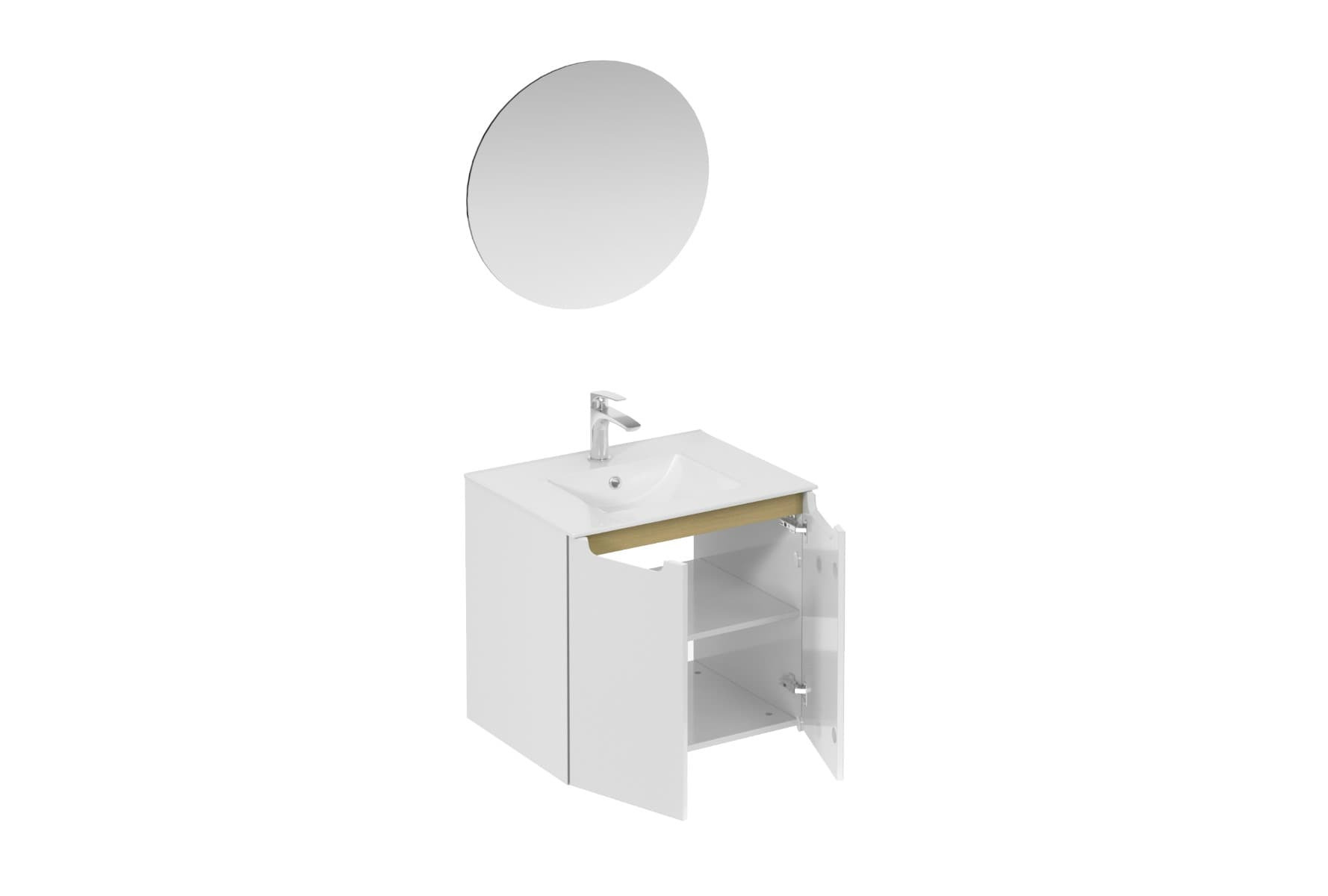 Ensemble de salle de bain mural avec lavabo en céramique blanc avec surface en mélaminé: