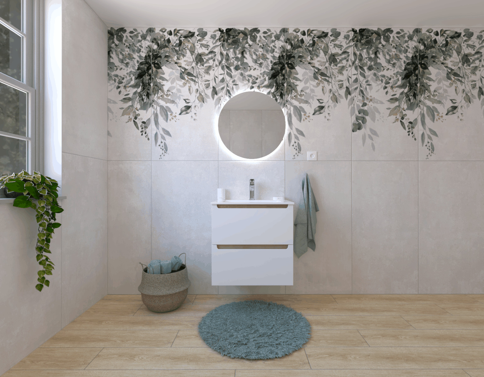- Meuble de salle de bain avec lavabo Naturel Stilla 60x60x45 cm blanc.