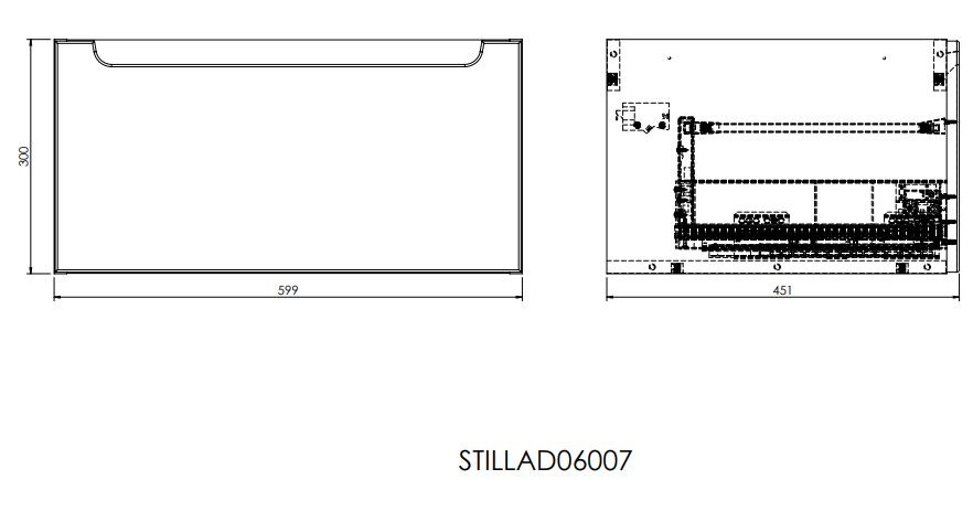 Meuble de salle de bain suspendu Stilla avec un tiroir de 60x30x45 cm avec plaque de recouvrement. L'armoire a fait partie de la collection modulaire STILLA et peut être combinée avec des armoires et des étagères supplémentaires. Cette solution vous permet d'obtenir plus d'espace de rangement pour tous les accessoires de salle de bain.