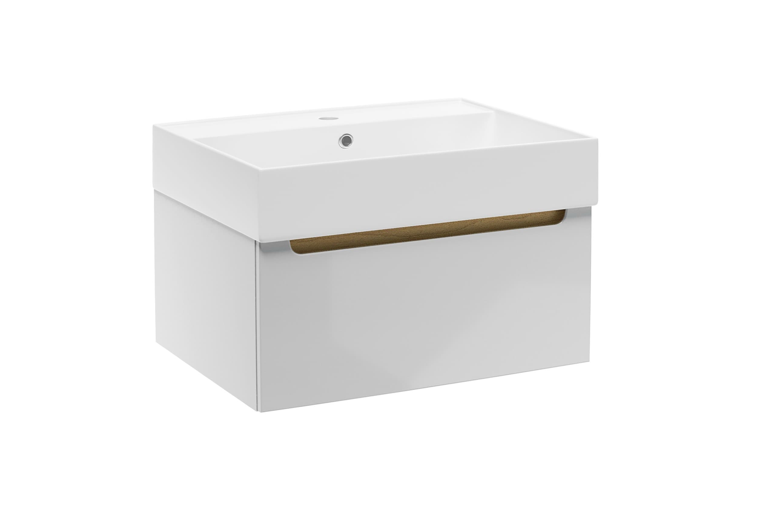 Meuble de salle de bain suspendu Stilla avec un tiroir de taille 60x30x45 cm avec lavabo élégant SAT Infinitio SATINF6046. L'armoire fait partie de la collection modulaire STILLA et peut être combinée avec des armoires supplémentaires, des boîtes à étagères et des plaques de recouvrement de votre choix. Cette solution vous permet d'obtenir plus d'espace de rangement pour tous les accessoires de salle de bain.