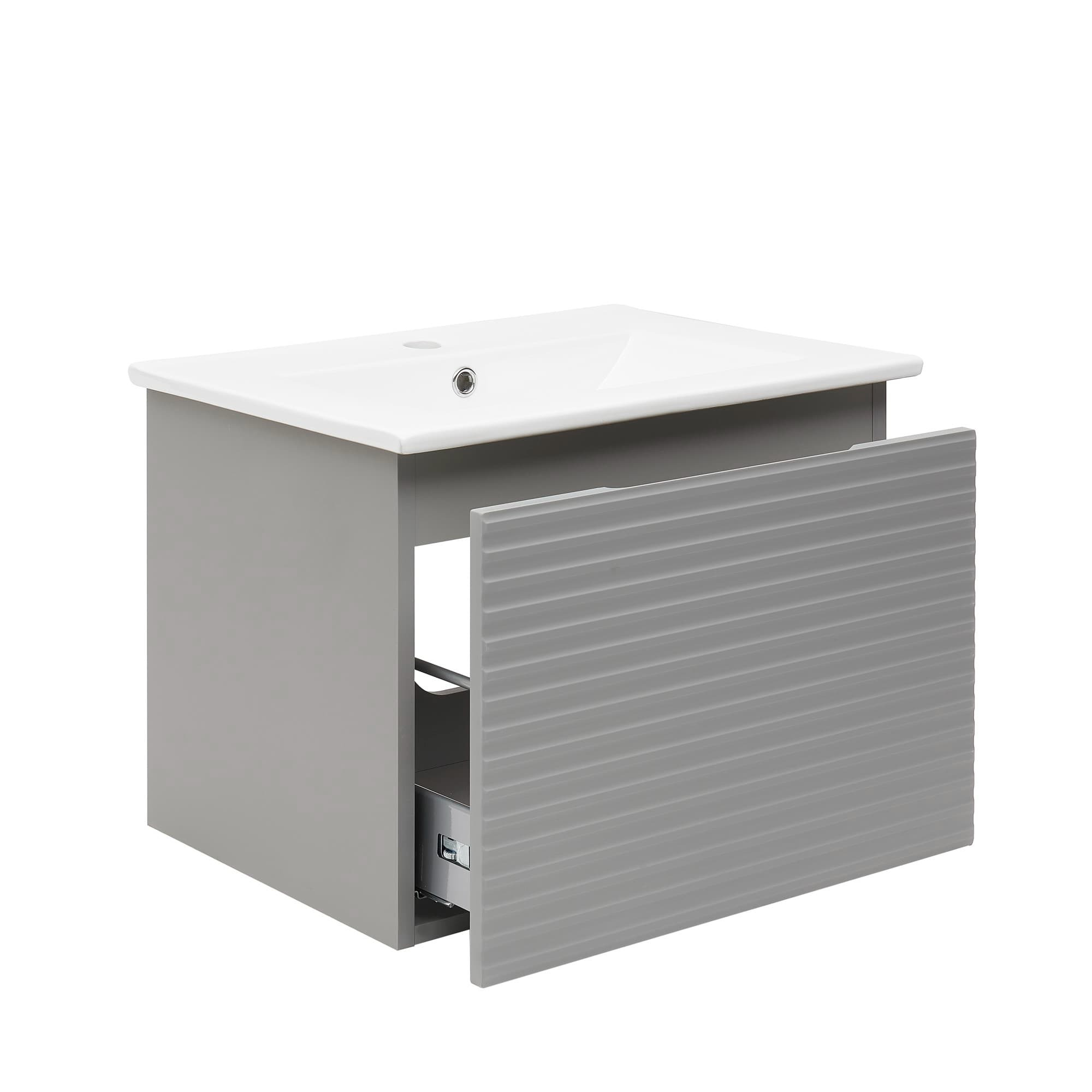 Naturel Meuble et vasque de salle de bain strié Naturel Savona 58x43x44,8 cm gris mat (SAVONA60GM)