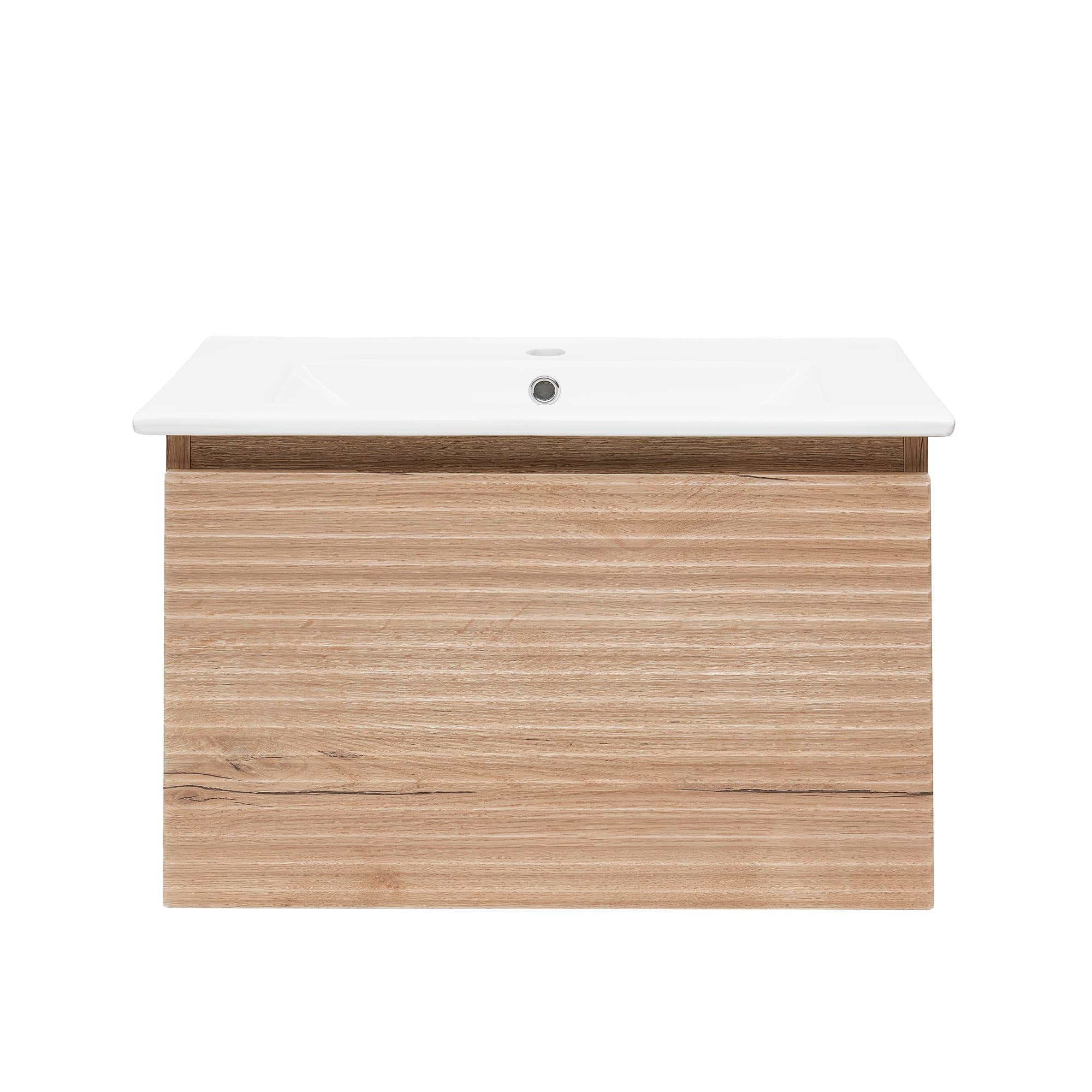 Meuble de salle de bain suspendu (78x43x44,8 cm) avec lavabo en céramique (81x46 cm) décor chêne halifax à surface mate. Surface stratifiée.