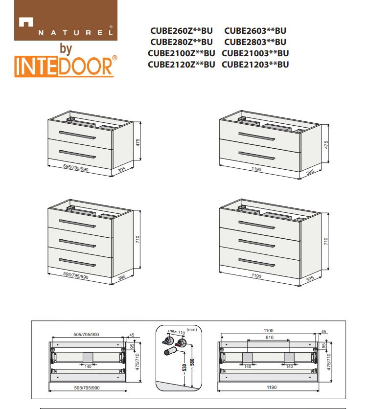 - Armoire de petite profondeur, idéale pour les petites salles de bains. Les tiroirs ont une extension totale avec butée.