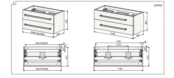 - Type d'ouverture:2 tiroirs