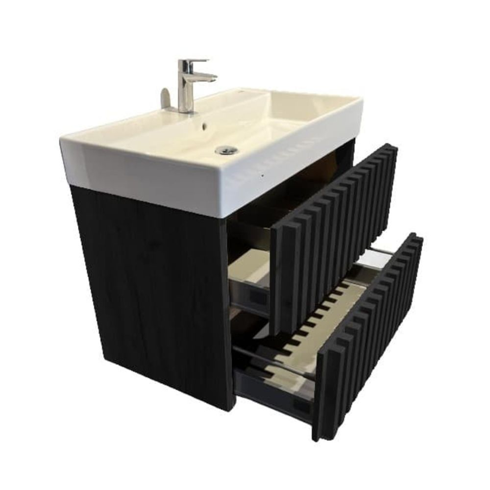 Nous vous présentons notre nouveauté, le meuble de salle de bain SAT Delano avec lavabo en finition chêne mat. Ce meuble n'est pas seulement un élément pratique et fonctionnel de votre salle de bain, mais apporte également à votre intérieur une touche de design d'intérieur contemporain - lattes verticales.