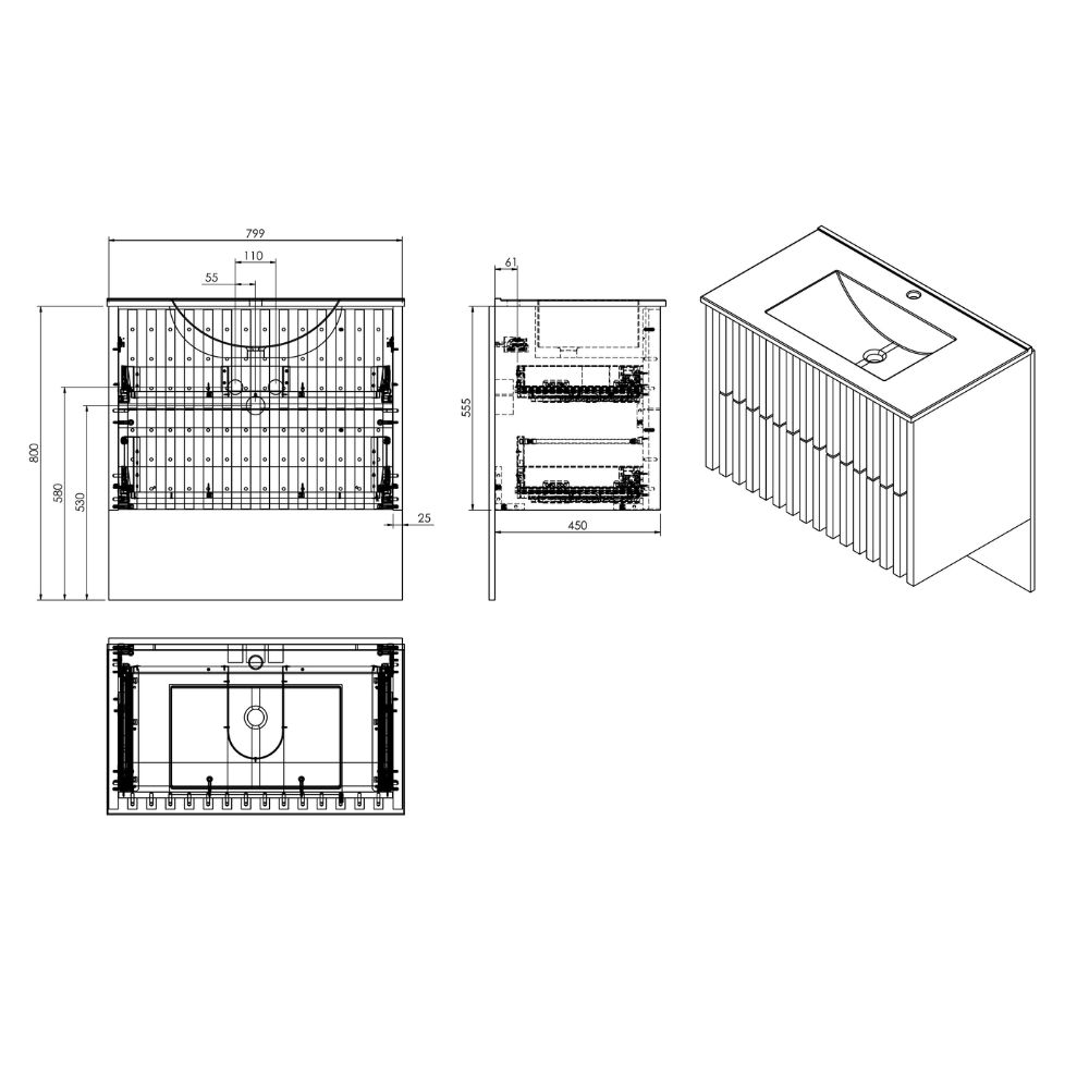 Caractéristiques du meuble de salle de bain avec lavabo SAT Delano 80x46 cm noir mat (DELANO80ZCUM):