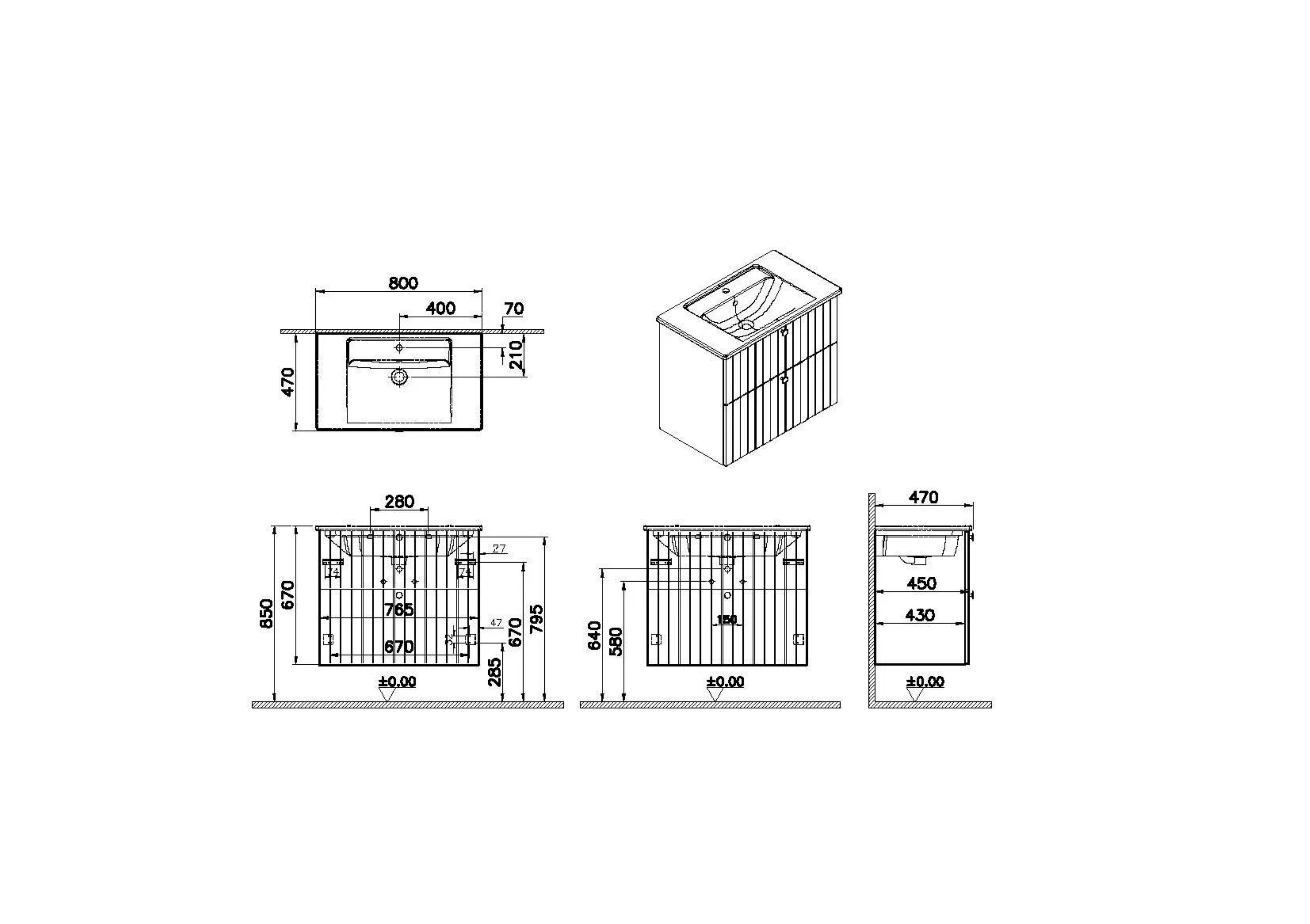 Avec ses dimensions compactes (80 cm de large, 67 cm de haut et 46 cm de profondeur), ce meuble est idéal pour les petites salles de bain. Retrouvez les détails précis des dimensions sur la photo.